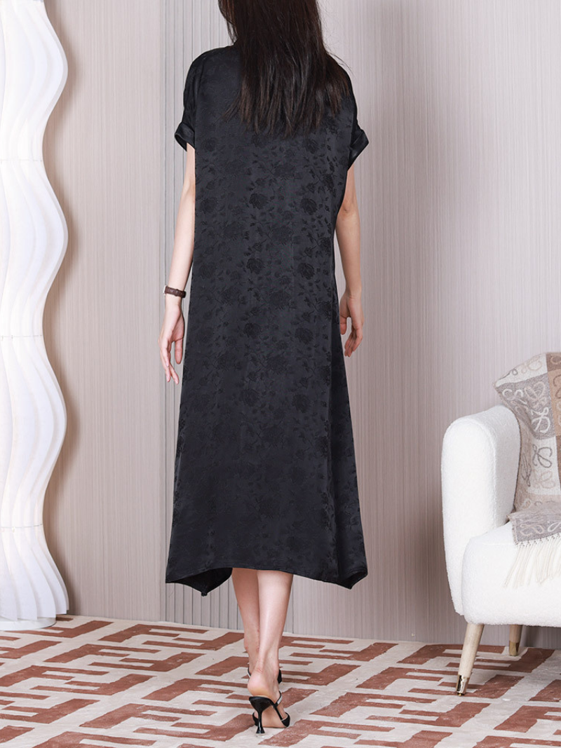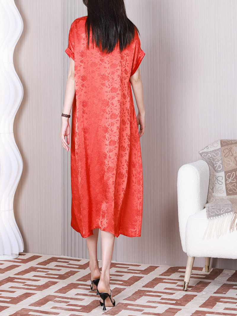 The Women's V-neck Short Sleeves A-line Dress is a stylish and versatile piece of clothing designed to flatter the female figure. It features a flattering V-neckline that elongates the neck and draws attention to the collarbone. The dress has short sleeves that provide coverage for the upper arms while keeping the wearer cool and comfortable.The A-line silhouette of the dress is fitted at the waist and flares out towards the hem. creating a feminine and elegant look. It can be dressed up with accessories such as high heels and jewellery or dressed down with sandals and a denim jacket. The dress is often made from lightweight. breathable materials.