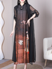 This stunning black dress is crafted from a luxurious blend of Cloud Satin (80%) and Blended Silk (20%). The combination of these high-quality fabrics provides a soft and smooth feel against the skin. making it comfortable to wear for extended periods. The dress features a unique animal pattern that adds a touch of glamour and playfulness to the design. It also has a stand collar that enhances the sophistication of the dress. making it perfect for formal events. The dress is designed with a middle waist that cinches the waistline and creates a flattering silhouette that is sure to turn heads. Whether you're attending a gala or a cocktail party. this dress is sure to make a bold statement.