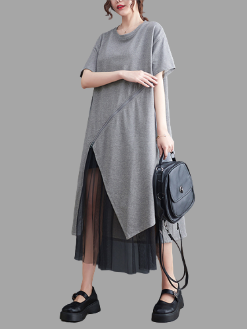 This mid-length dress is made of high-quality cotton material. ensuring comfort and durability. It comes in two classic colors - black and gray - and features a plain pattern. making it a versatile piece that can be paired with various accessories and footwear. The dress has a round neck and short sleeves. providing a comfortable and casual fit. Its mid-length design adds a touch of elegance to the overall style. making it suitable for both formal and casual occasions. The high-quality cotton material ensures breathability. making it a suitable choice for all seasons. This dress is a must-have for anyone looking for a comfortable and versatile piece that can be dressed up or down for various occasions. Its classic design and high-quality material make it a timeless addition to any wardrobe.