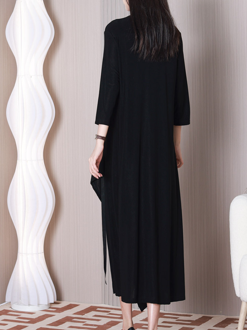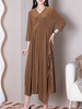 A women's loose V-neck A-line dress is a stylish and comfortable option for those who want to look effortlessly chic. This type of dress features a loose fit with a V-neckline. which is flattering on a variety of body types. The A-line silhouette flares out from the waist. creating a feminine and flattering shape that is perfect for both casual and dressy occasions also available in yellow and black color. This dress is available in a range of fabrics. colors. and patterns. making it suitable for a variety of styles and preferences. It can be paired with sneakers or sandals for a casual look. or dressed up with heels and statement jewellery for a more polished look.