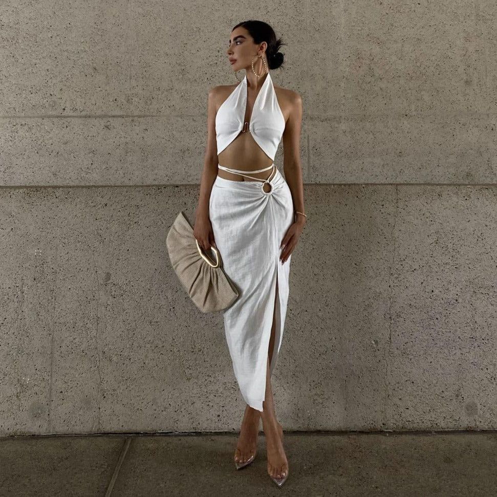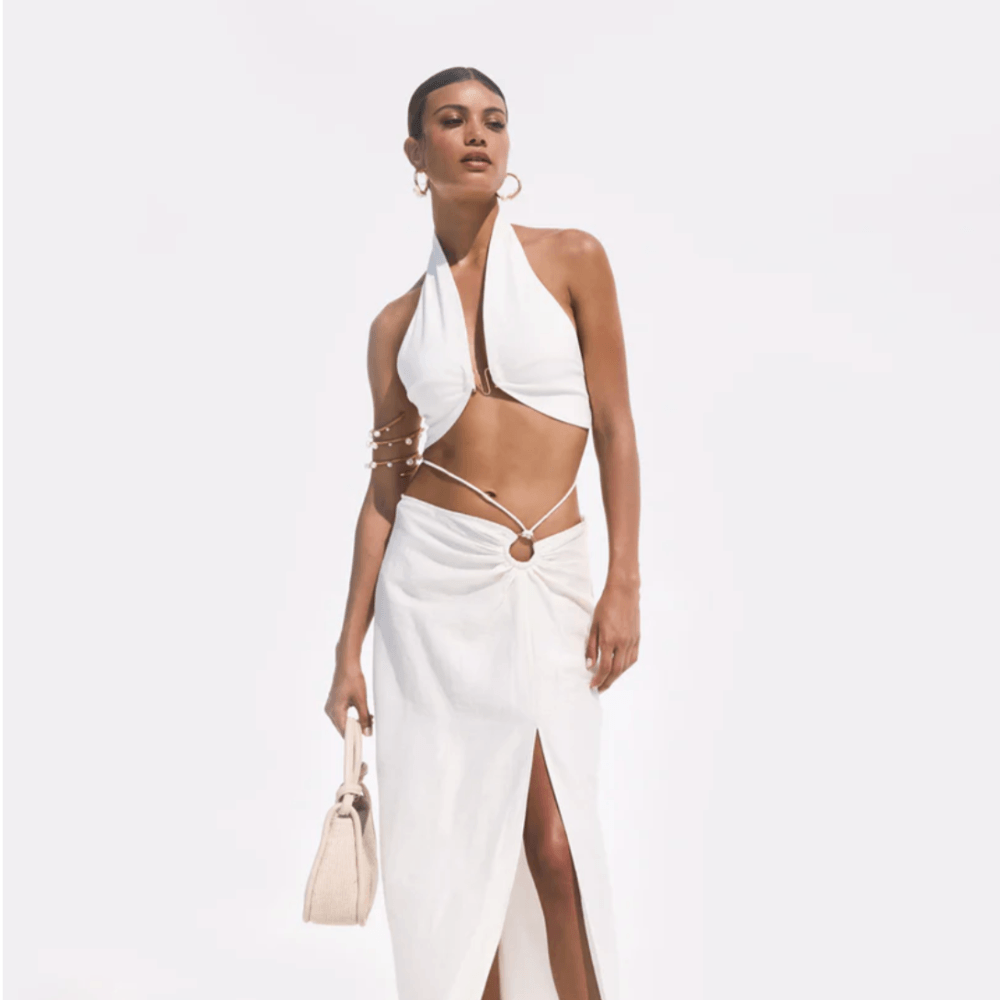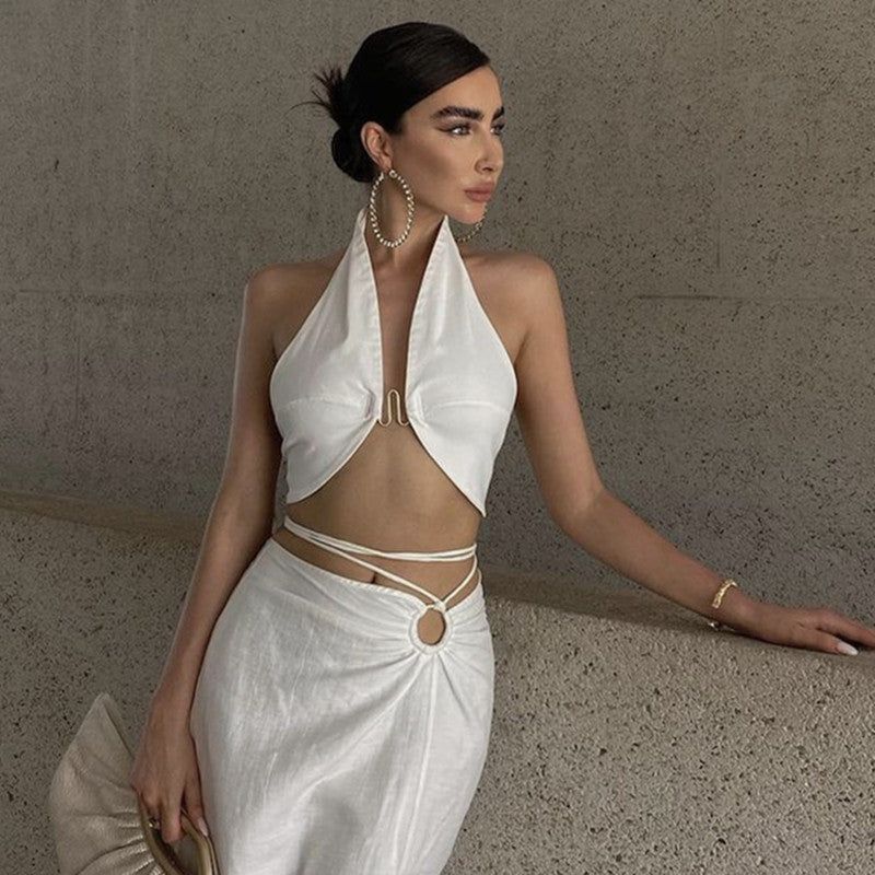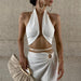 ï»?/em>Introducing the Kyla Halter Crop Top. a trendy and versatile piece that will elevate your summer wardrobe. This crop top features a chic halter neckline. creating a flattering silhouette that accentuates your shoulders and neckline. Crafted with high-quality materials. it offers both comfort and style. The Kyla Crop Top is perfect for warm weather occasions. whether you're headed to a beach party. music festival. or a casual outing with friends. Pair it with high-waisted jeans. shorts. or skirts to create various stylish looks. Embrace the laid-back vibes and fashion-forward appeal of the Kyla Halter Crop Top and let your summer style shine.