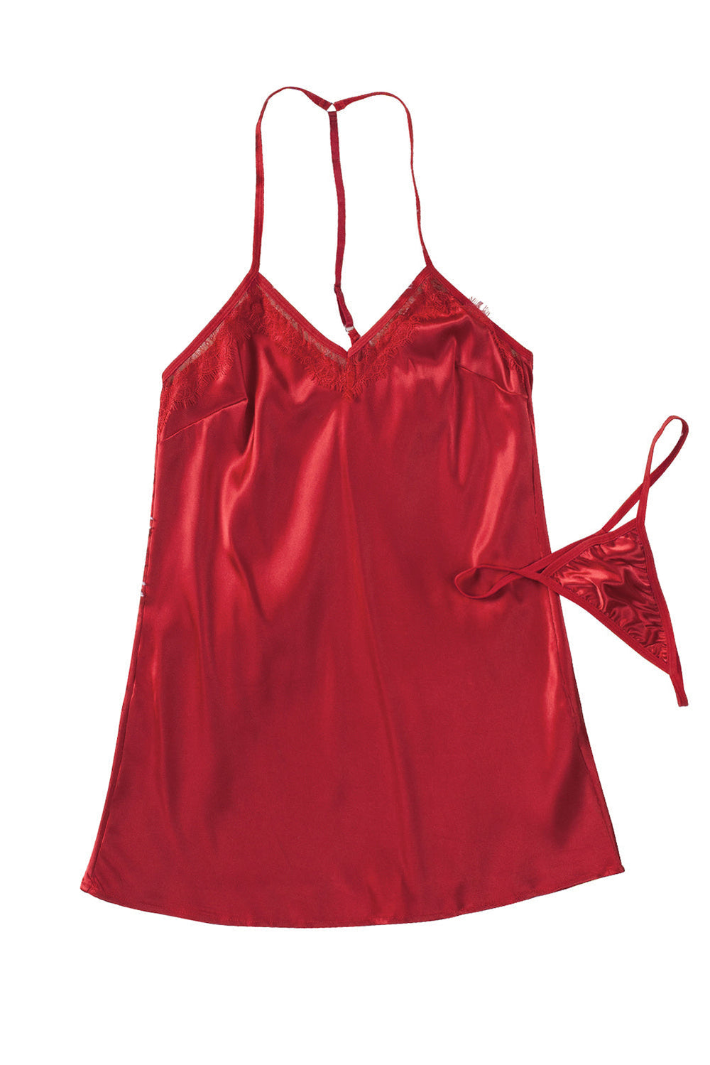 This Lace Patchwork Halter V Neck Sexy Babydoll is the perfect addition to your wardrobe.