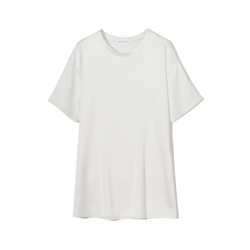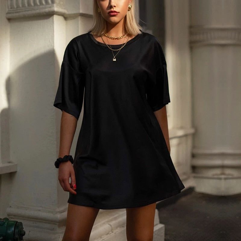 Introducing the Lexia Oversized Satin T-Shirt. a luxurious and effortlessly chic addition to your wardrobe. This t-shirt features an oversized fit that provides a relaxed and comfortable silhouette. perfect for casual yet elevated looks. Crafted from smooth and lustrous satin fabric. it offers a touch of elegance and sophistication to your everyday style. Whether you dress it up with tailored pants and heels or dress it down with your favorite jeans. the Lexia Oversized Satin T-Shirt is a versatile piece that brings a hint of luxury to any outfit. Embrace the comfort and refinement of this unique t-shirt and elevate your fashion game with its understated yet glamorous appeal.
