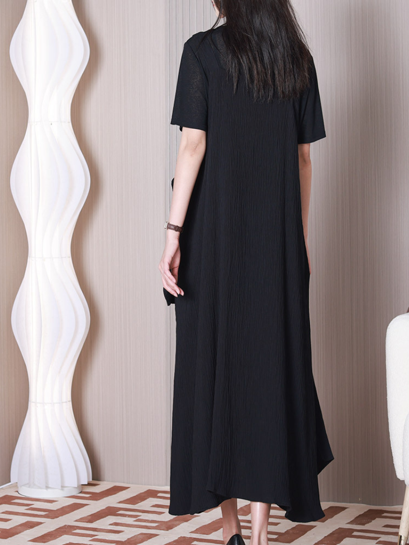 The Women's Round Neck pullover short sleeves A-line Dress is a stylish and comfortable dress designed for women. The dress features a round neck and short sleeves. making it perfect for warmer weather. This dress has different attractive color varieties like coffee and black.The A-line cut creates a flattering silhouette that flares out from the waist. giving it a playful and feminine look. Made from high-quality fabric. this dress is soft. breathable. and easy to care for. It's a versatile piece that can be dressed up or down. making it suitable for a variety of occasions. from casual outings to formal events.