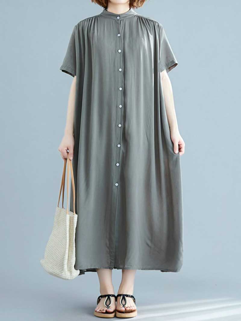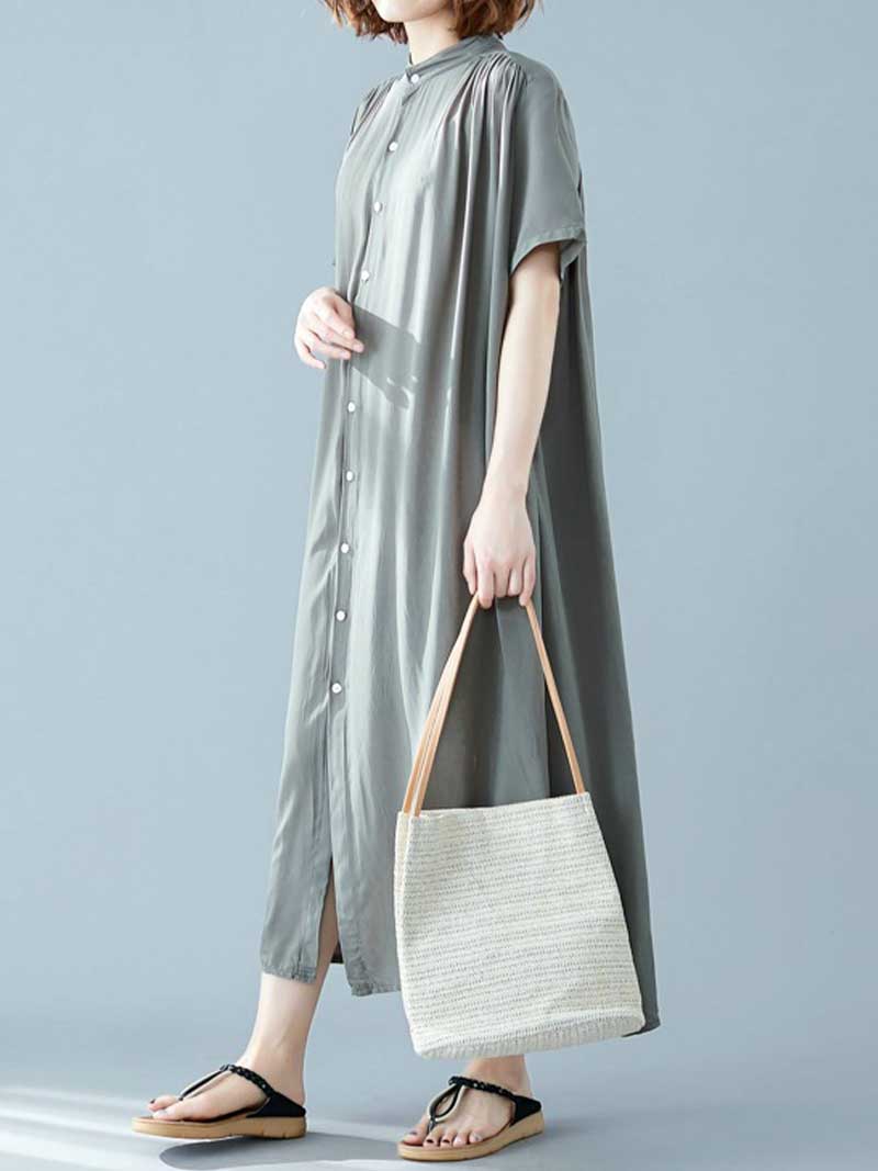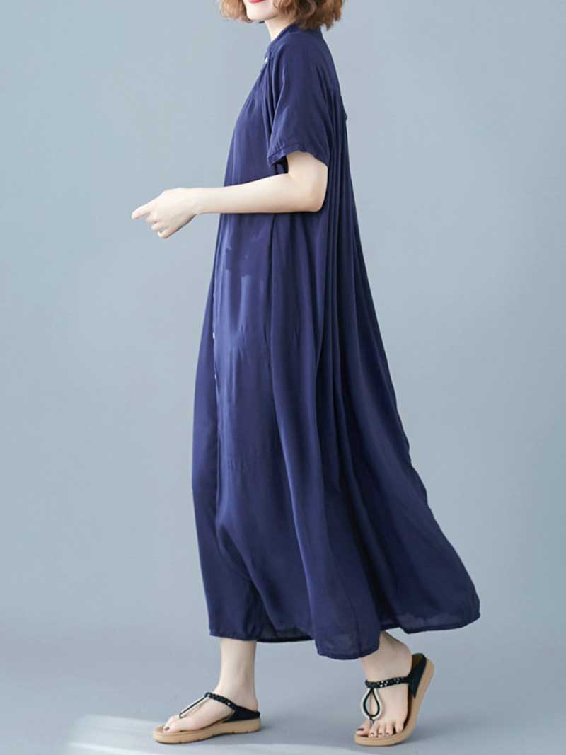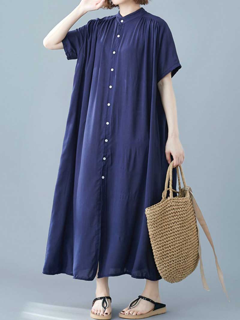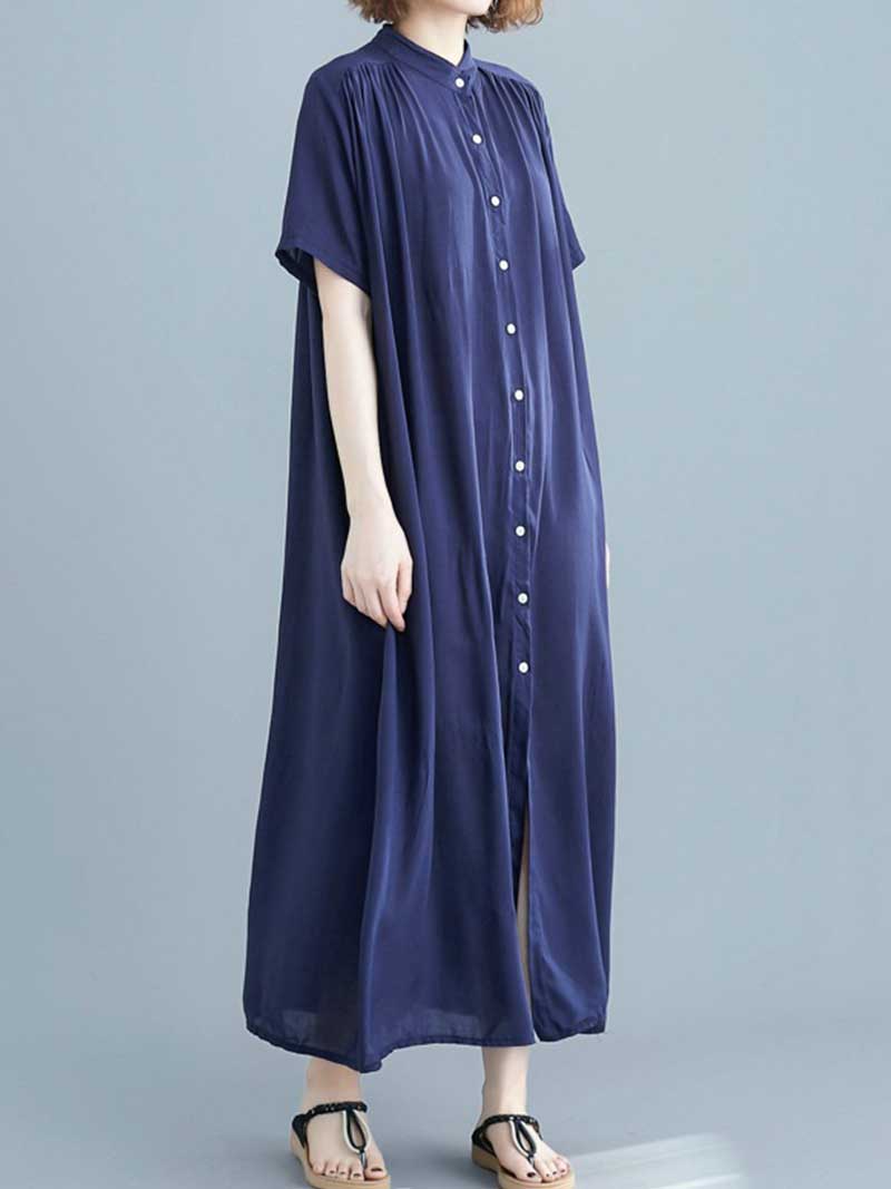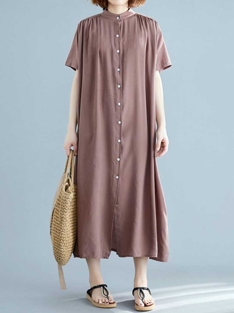 This shirt dress is one of my favorites! It's super comfortable and perfect for Spring and Summer weather. The material is made with cotton. breathable and perfect for warm days. You can wear it with a collar. It also has short sleeves. making it even more comfortable to wear on those hot days. The dress comes in several colors. including Navy Blue. army green & brown. So there's definitely a color for everyone!