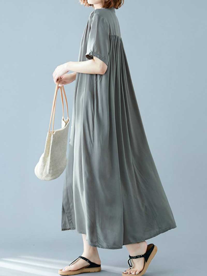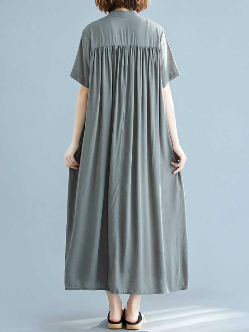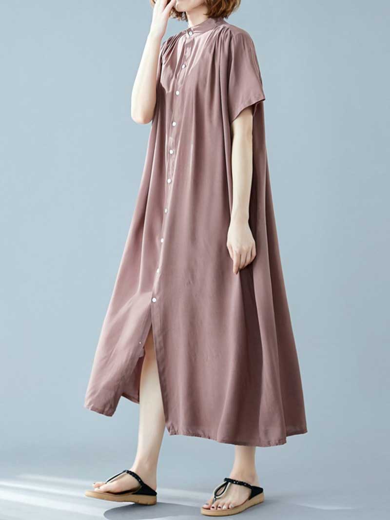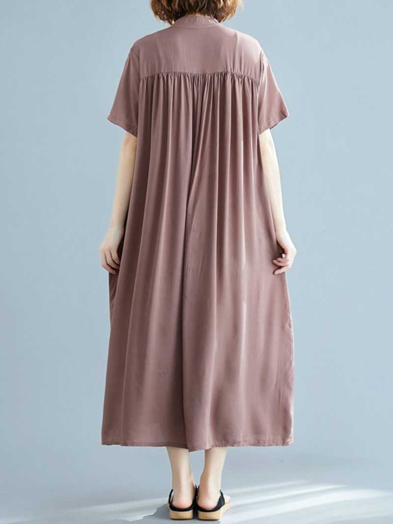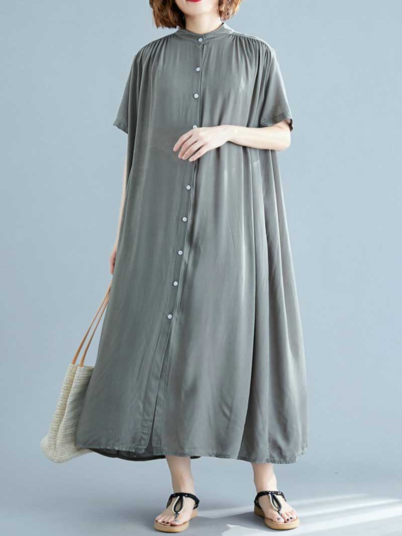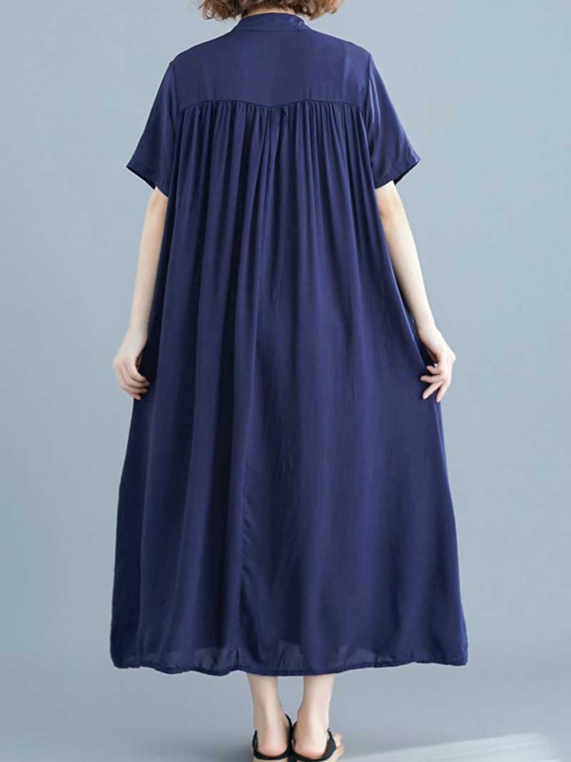 This shirt dress is one of my favorites! It's super comfortable and perfect for Spring and Summer weather. The material is made with cotton. breathable and perfect for warm days. You can wear it with a collar. It also has short sleeves. making it even more comfortable to wear on those hot days. The dress comes in several colors. including Navy Blue. army green & brown. So there's definitely a color for everyone!