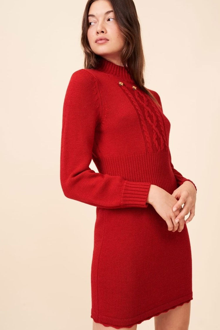 Keep warm and sweet in cold weather with vintage style sweater dresses. This long sleeve high neck pullover sweater mini dress in our boutique is timeless and versatile for your upcoming Christmas. Designed with a ribbed mock neckline with embroidered flowers and cable knit at front. long fitted sleeves with ribbed cuffs. a figure hugging silhouette with an elasticated waistband. and a short dress cut with a scalloped edge. this French style knit dress for women creates a elegance vibe for autumn and winter. Wear it day to night with suede boots and a chain bag for a chic outfit.