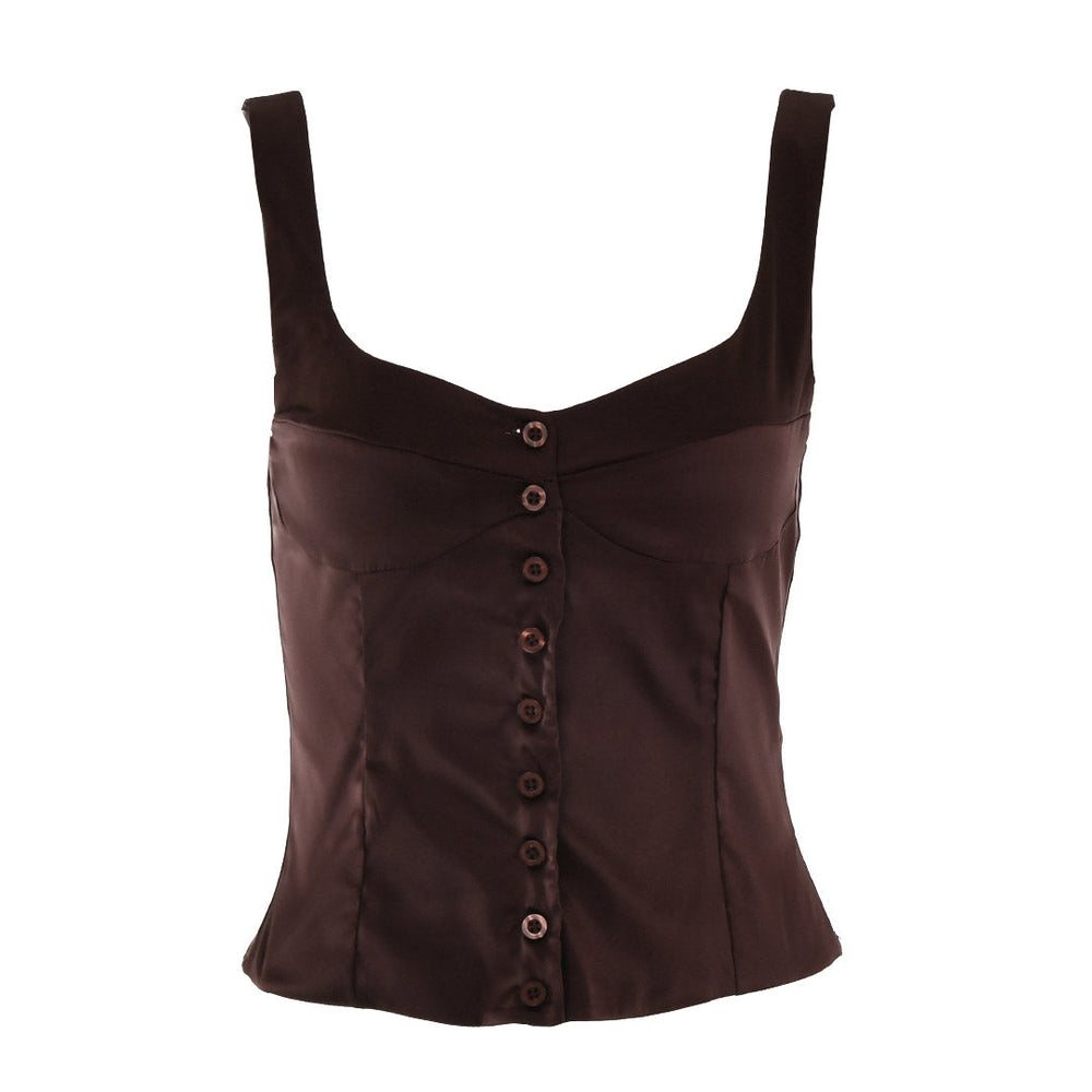 Experience pure indulgence with our satin tank top - the ultimate in luxury fashion. This sleeveless top is designed with a satin gloss finish that adds a touch of sophistication to your look. The chic buttons allow you to wear it opened as a vest. making it a versatile and stylish option. Featuring a square neckline and a tank bodice with two fixed shoulder straps. this trendy top is both comfortable and fashionable. The polyester fabric is not sheer. meaning that there is no lining required. You can enjoy the silky smooth feeling of the fabric against your skin without worrying about transparency. Whether you're dressing up for a special occasion or keeping it casual for a day out. this Satin Tank Top is the perfect choice. Pair it with ourcoatsandpantsfor a professional look. or withjeansandheelsfor a night out on the town.