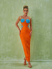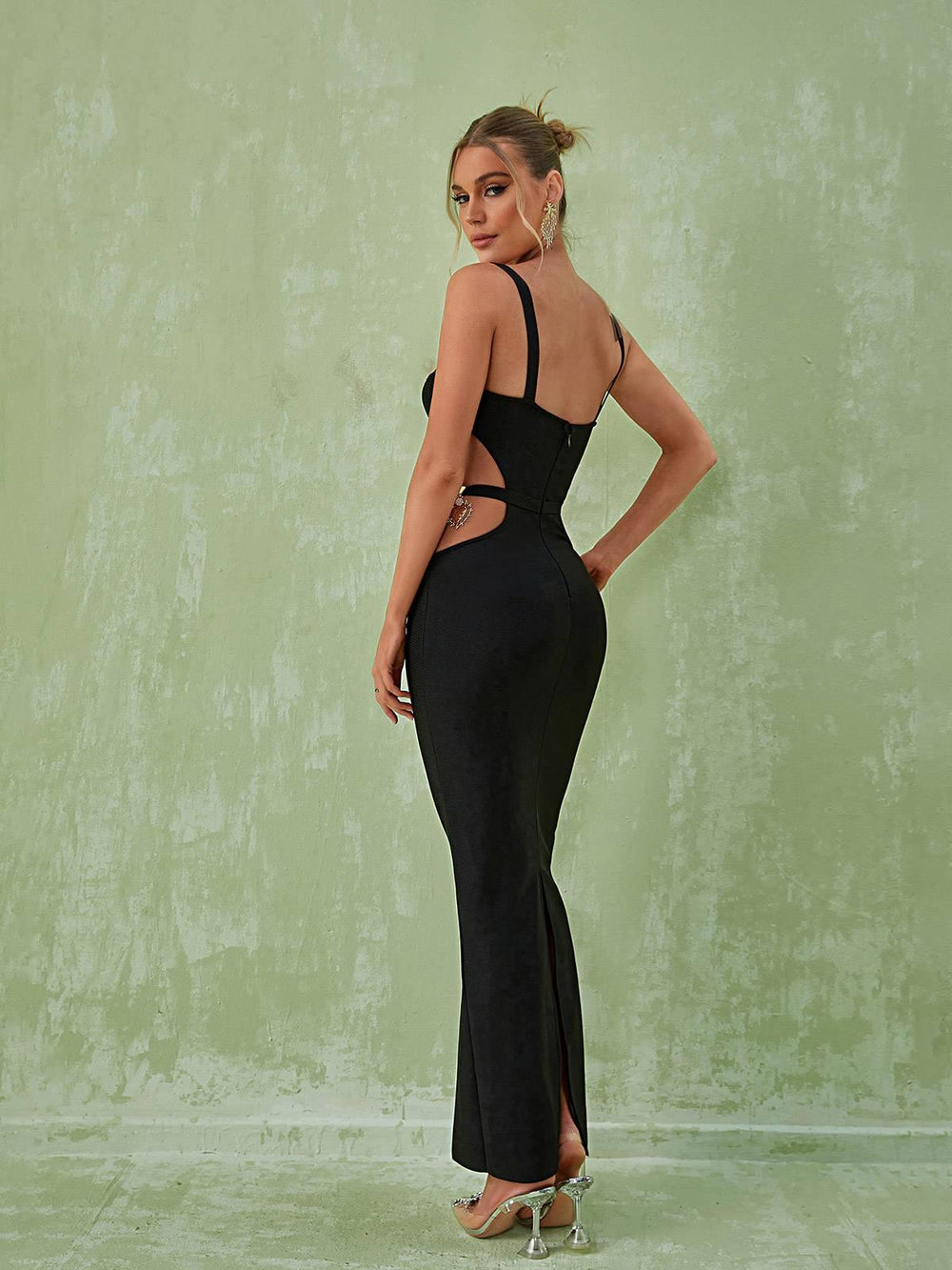 Get ready to look all kinds of glam in this Margaux Embellished Cutout Maxi Dress In Pink. Featuring a pink and green material with a cut out design and metal embellished detailing. Wear with clear heels and simple accessories to steal all the stares.