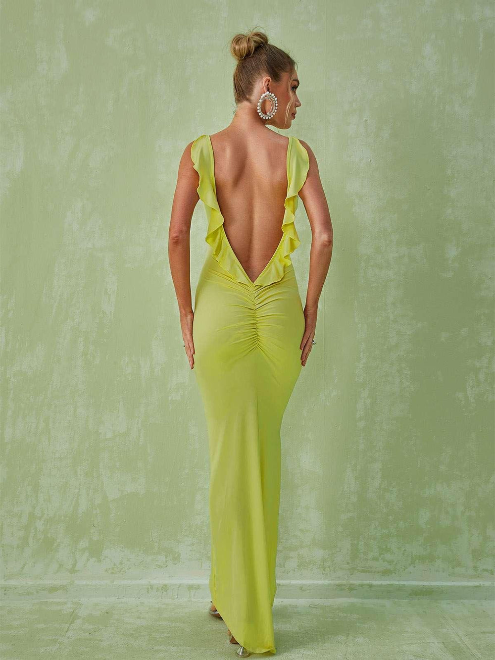 The Marzia Backless Maxi Dress In Green is an elegant statement piece for any special occasion. This white dress offers a timeless style features backless and ruched detailing that make it stand out in a crowd. The maxi length ensures it will flatter any figure while making sure you remain comfortable all night.
