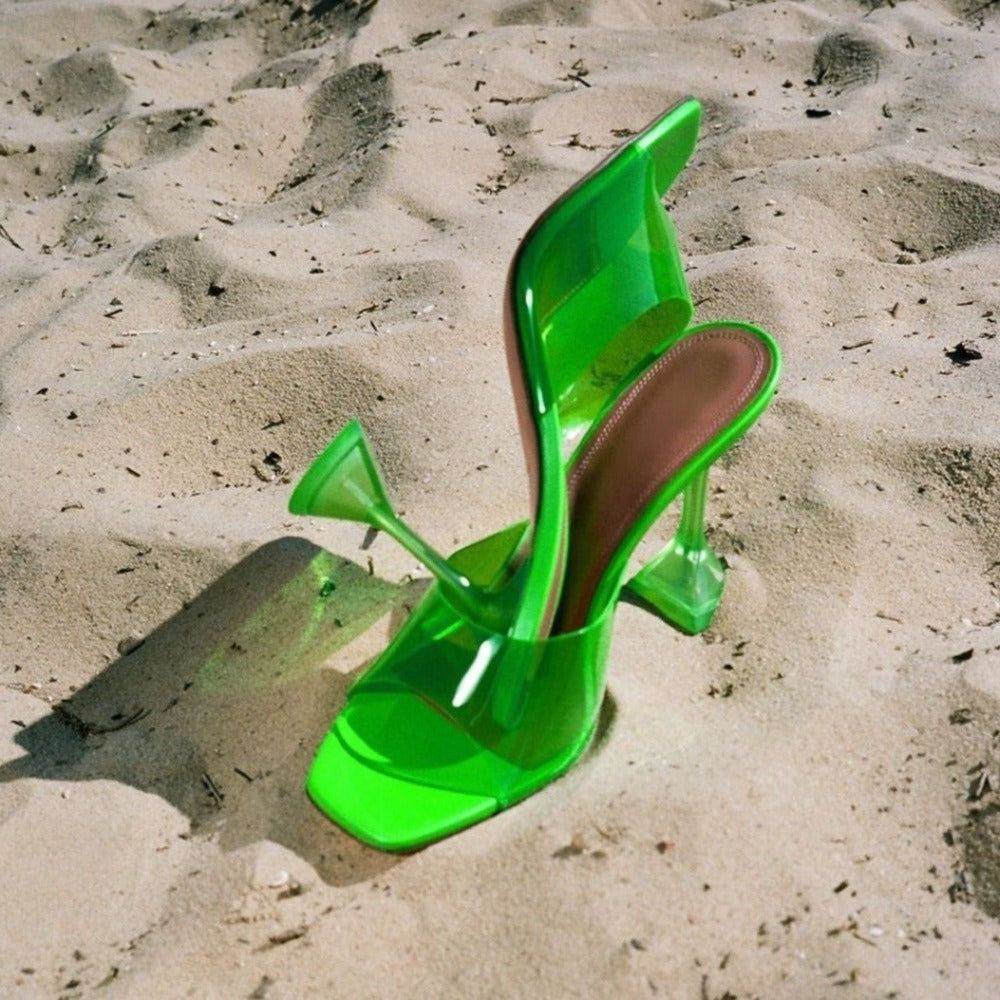 A thoroughly modern take on glass slippers. the Moonchild Sandals from Fiel Shop are sure to put a sensual spin on any outfit. Made from PVC. they have a slip-on silhouette and the label's signature martini heels.