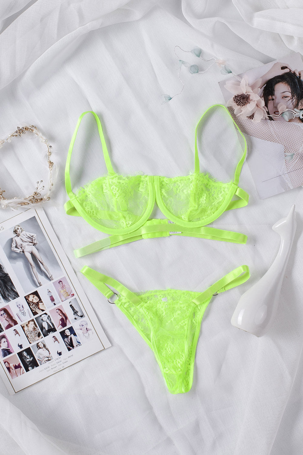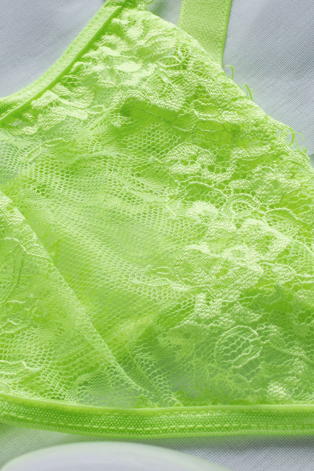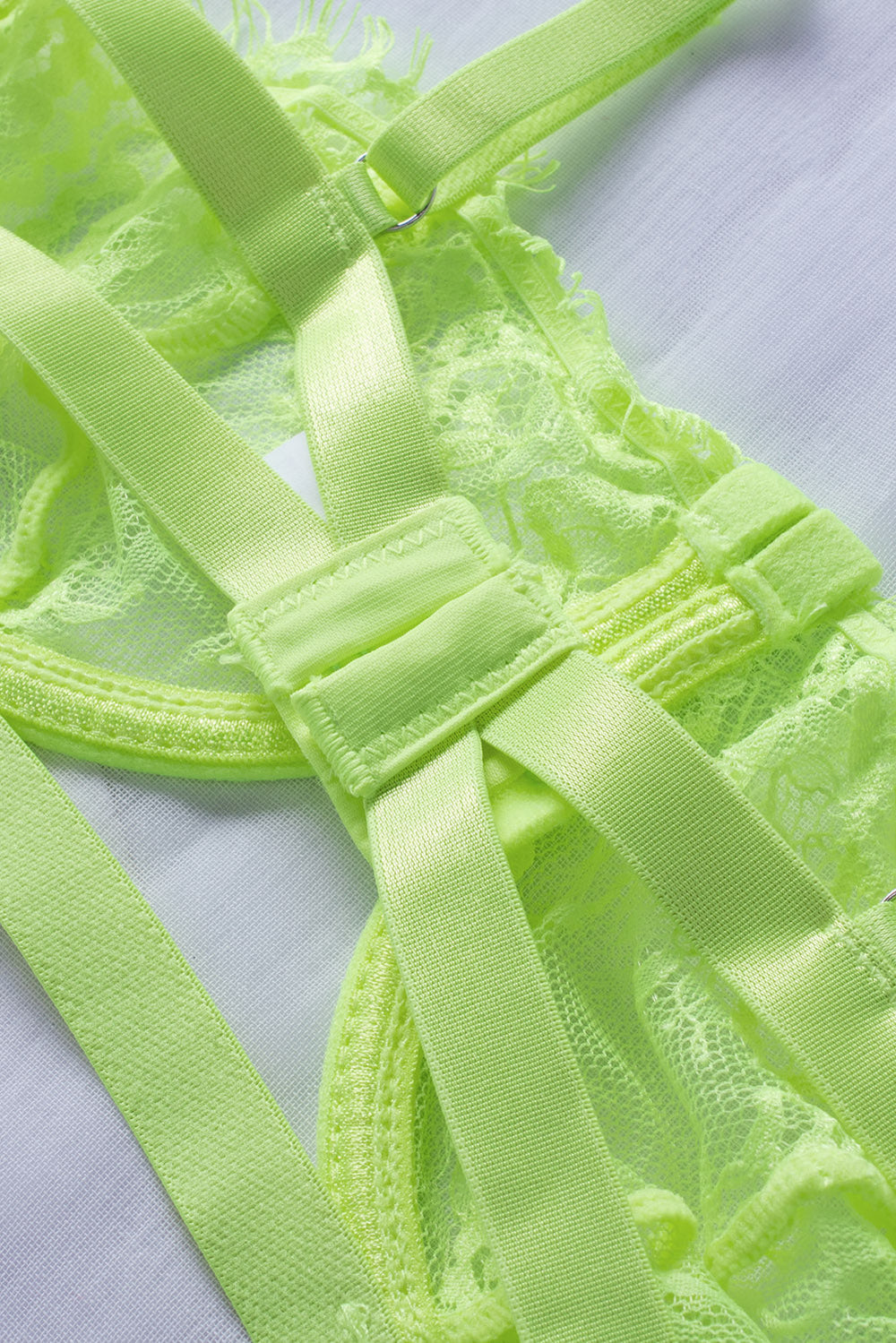 The Neon Lace Balconette Bralette Lingerie Set is the perfect addition to your lingerie collection.