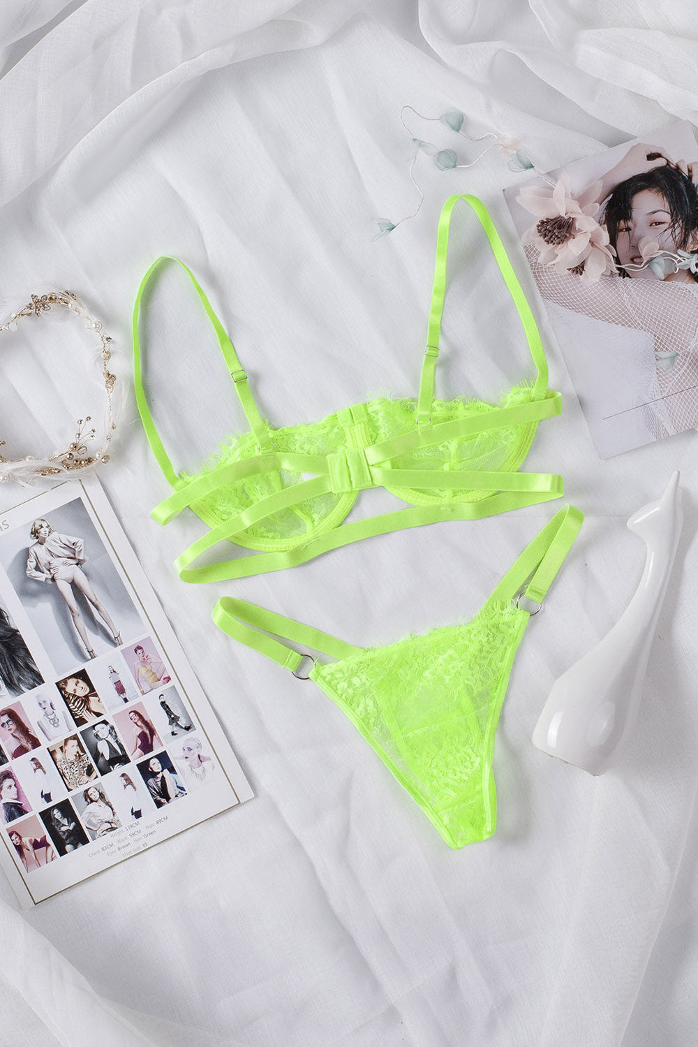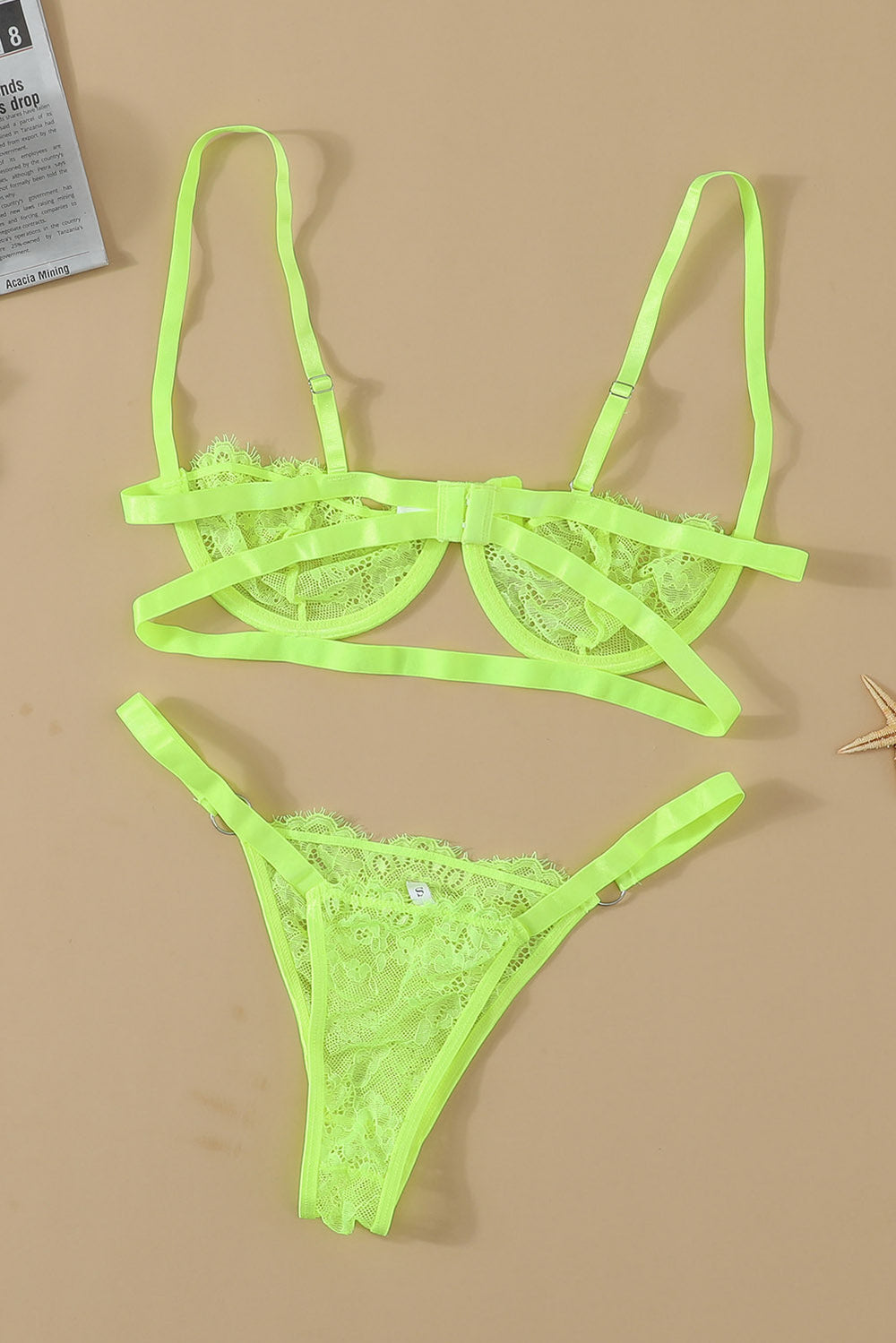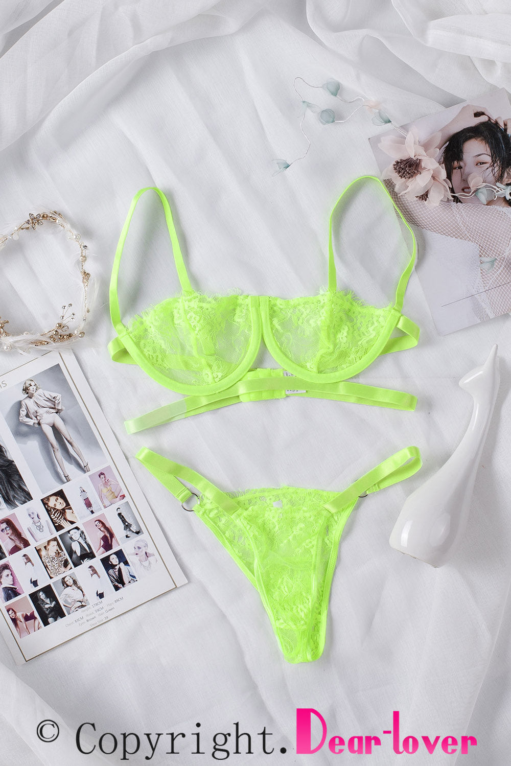 The Neon Lace Balconette Bralette Lingerie Set is the perfect addition to your lingerie collection.