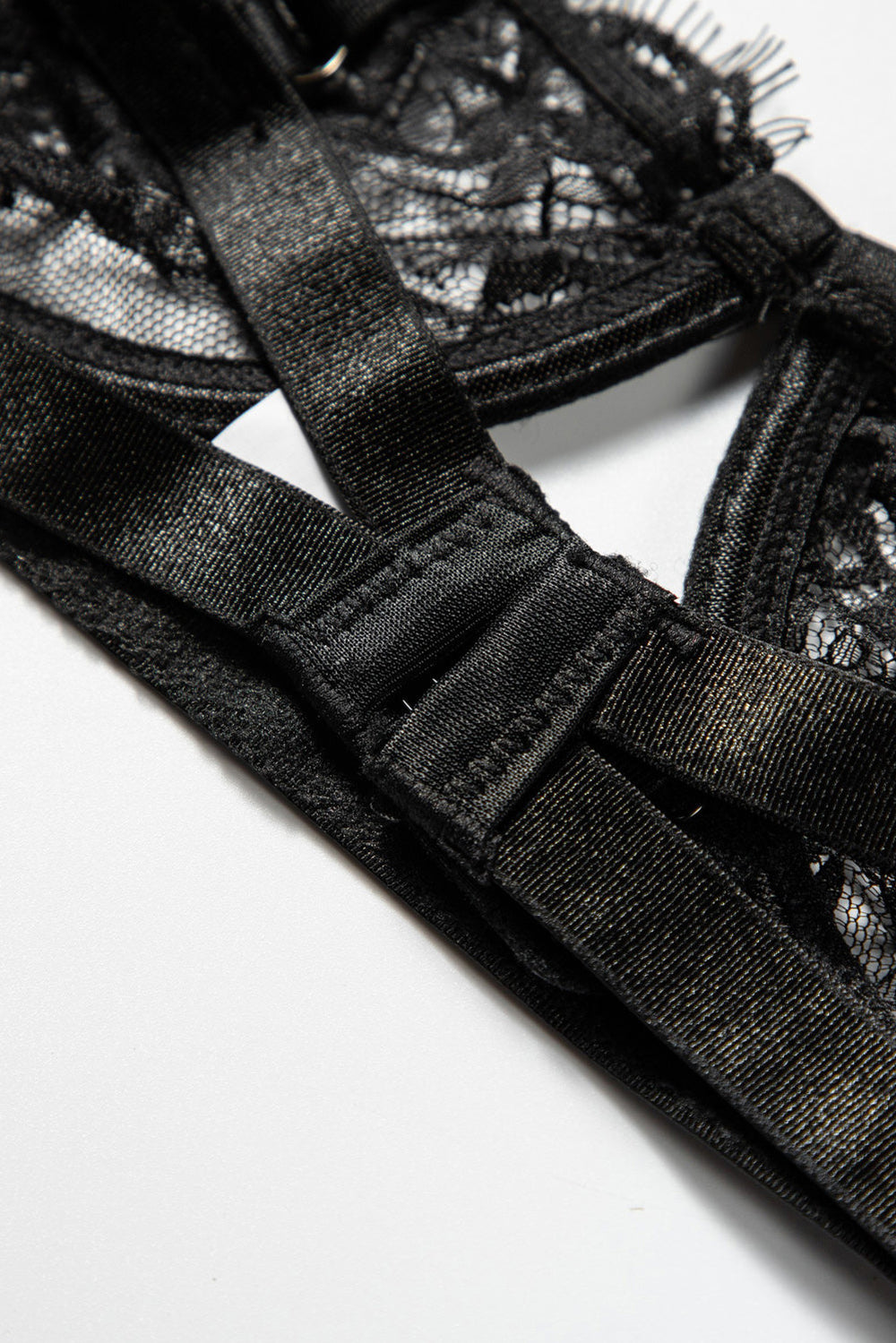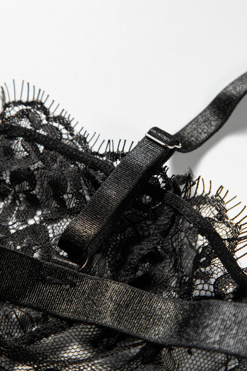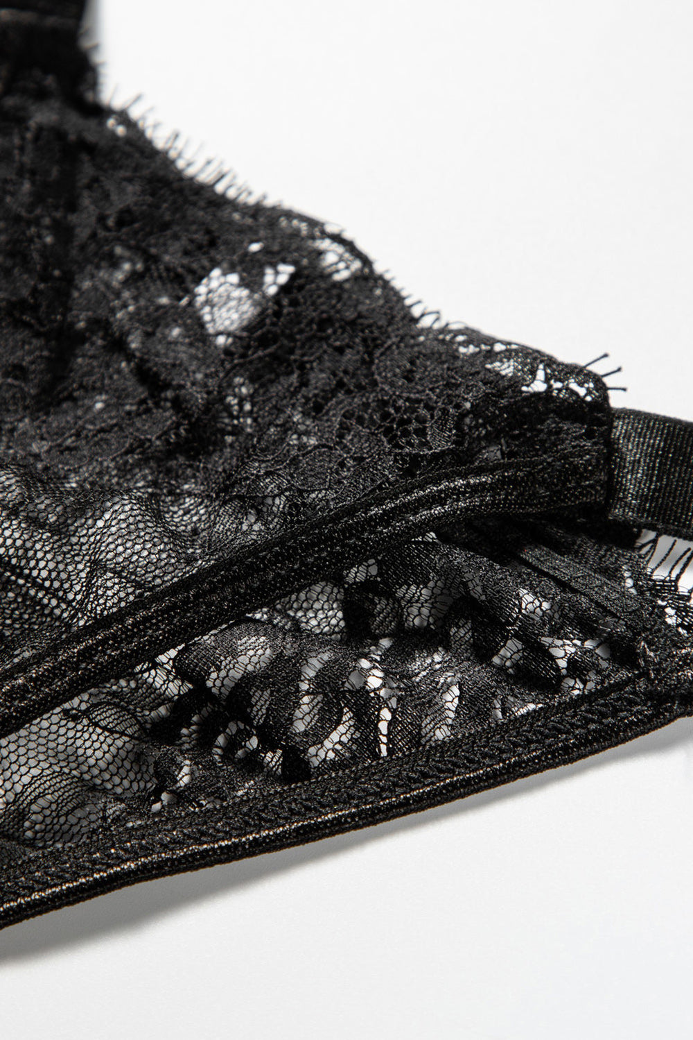 The balconette bralette features a beautiful lace design with a deep V-neckline and adjustable straps for a perfect fit.