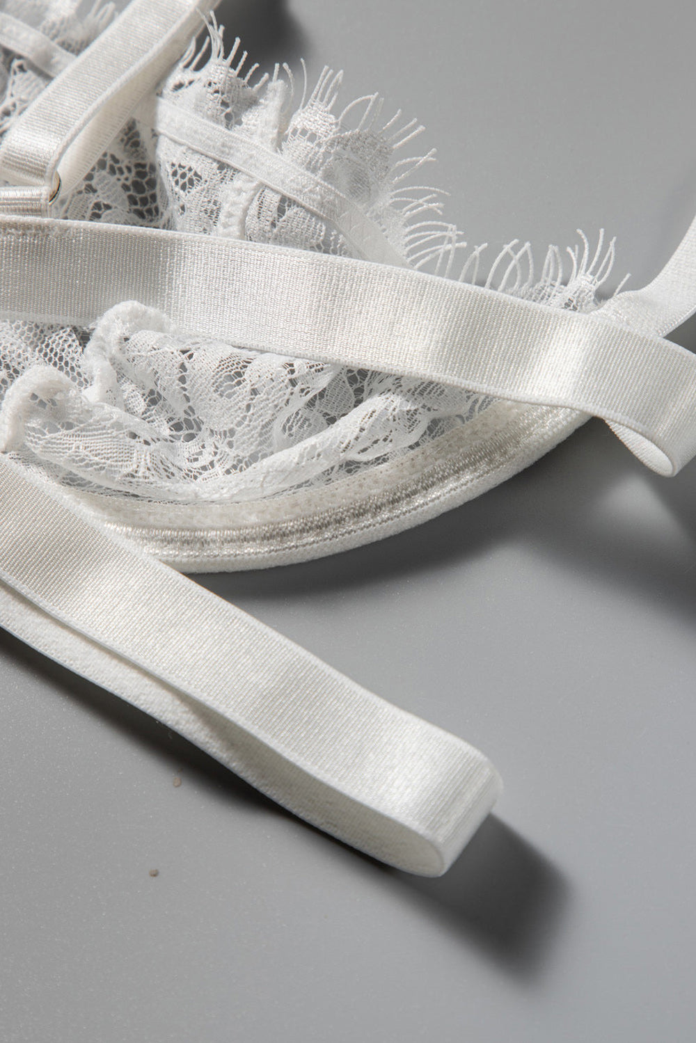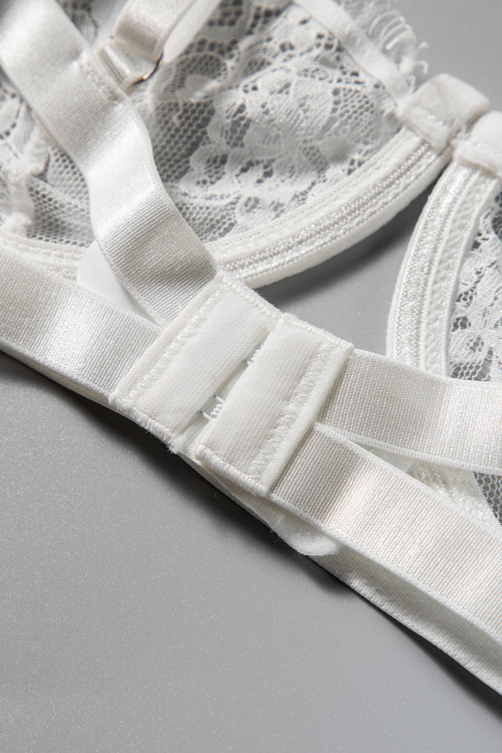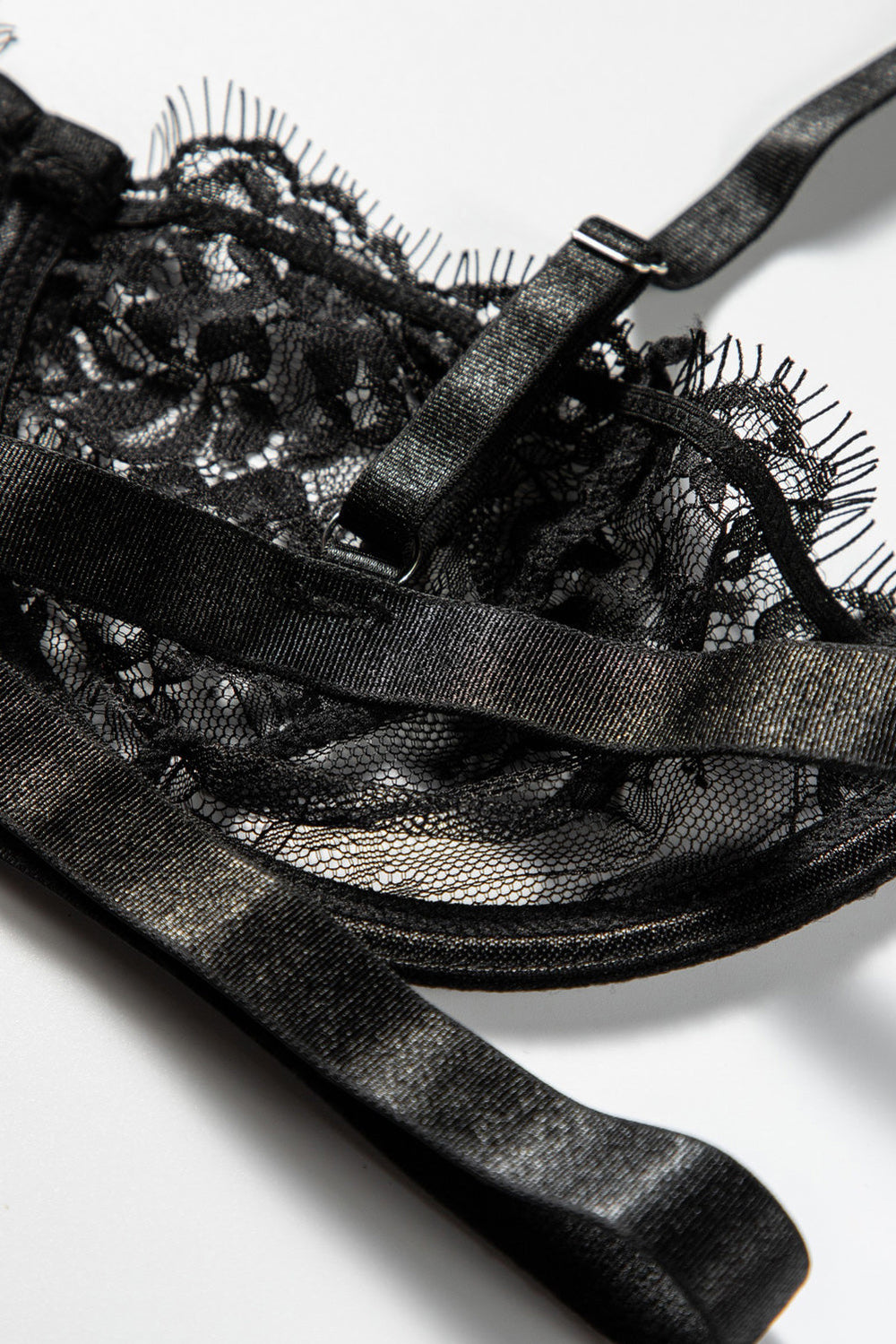 The balconette bralette features a beautiful lace design with a deep V-neckline and adjustable straps for a perfect fit.