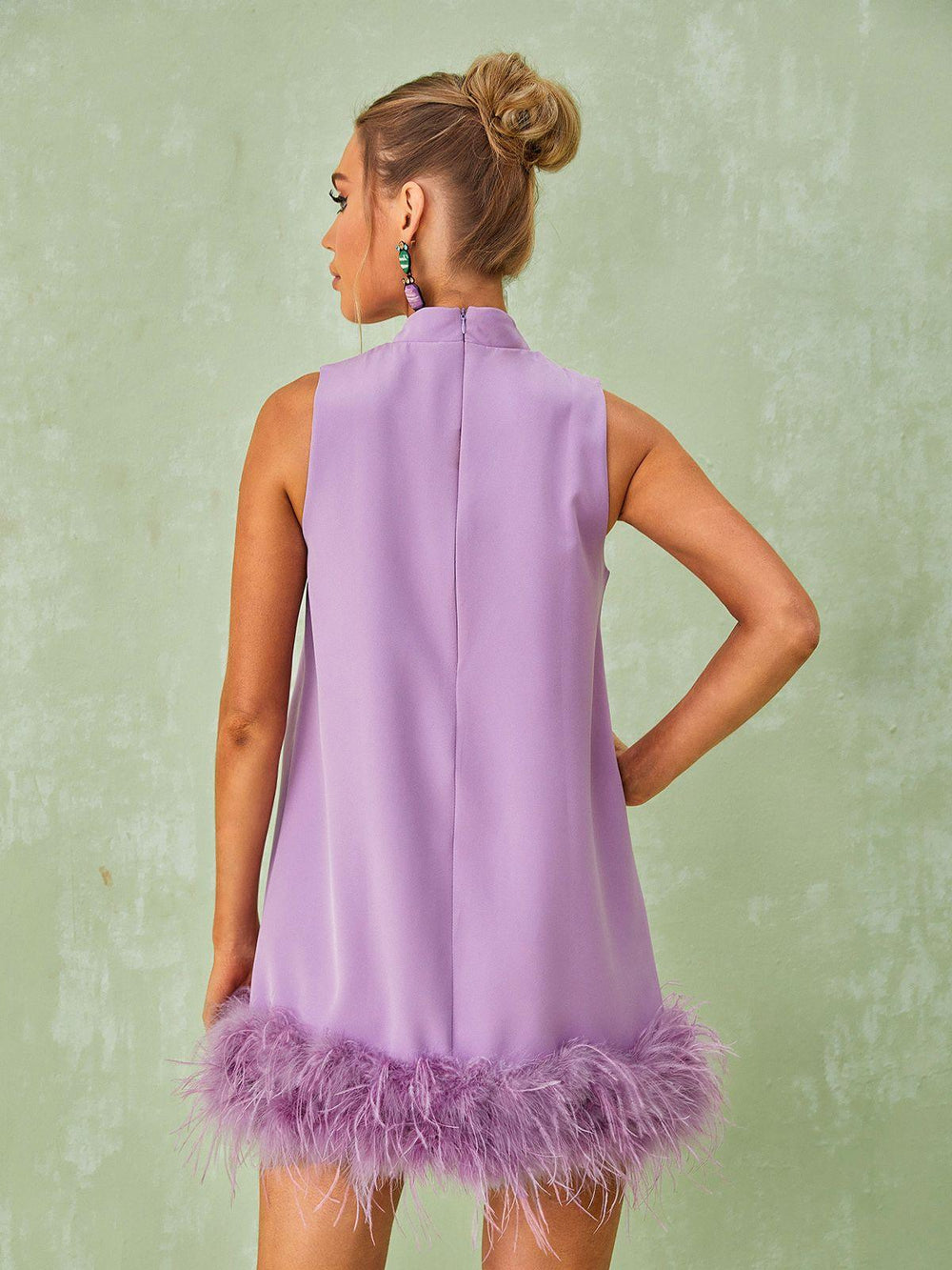 TheNisha Feather Mini Dress In Black featuring a raised neckline and ostrich featherhemlinecut to a flattering a-line silhouette.