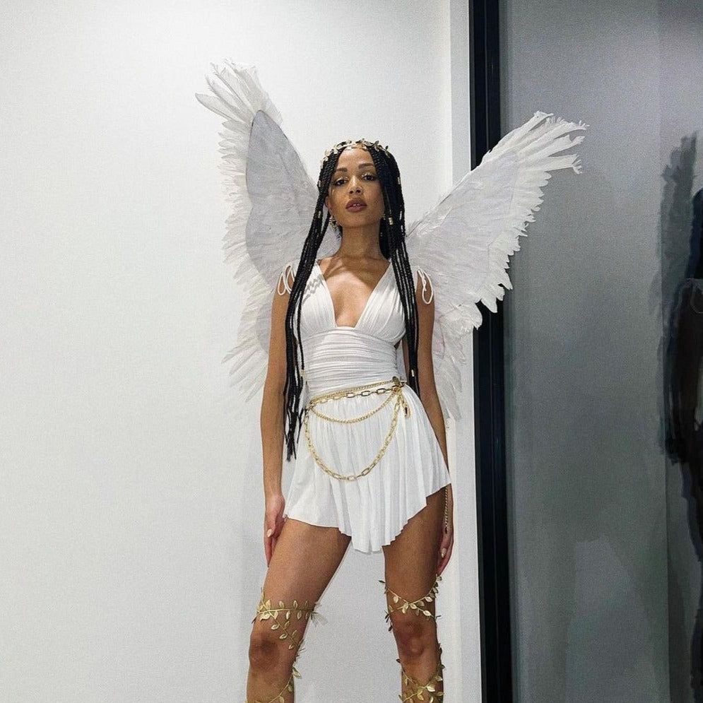 Oasis Knotted Shoulder Ruched Mini Dress puts a stylish twist on a classic mini dress. Featuring a plunge neckline. thick straps with ruched detailing and tie detail. a ruched waistband. an open back design. and soft. stretch fabric. Style with clear heels and gold accessories to ensure you stand out from the crowd.