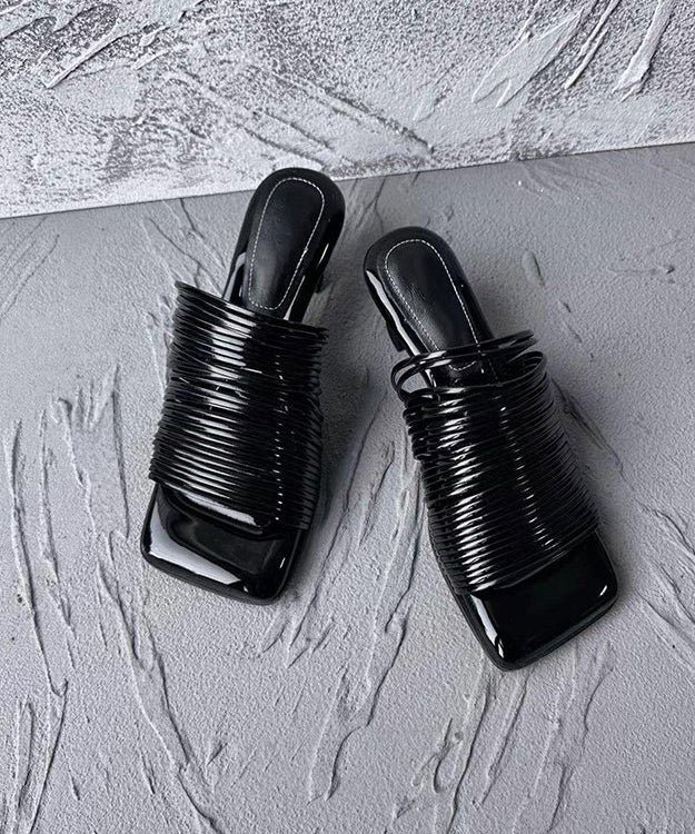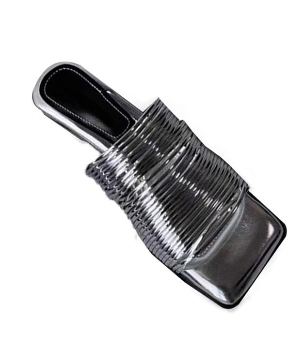 These Gold Chunky Heel Slide Sandals with a peep toe are designed with an original and eye-catching design.