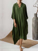 Check out our Plain Polyester Long Sleeves Kaftan Dress! This loose-fitting dress is made of polyester material. making it both comfortable and lightweight. It features a V-neck collar and long sleeves. perfect for those warmer days. And it comes in three different colors - black. orange. and green - so you can find the perfect shade to match your style. Whether you're heading to the beach or just running errands around town. this dress is sure to keep you feeling cool and looking great.