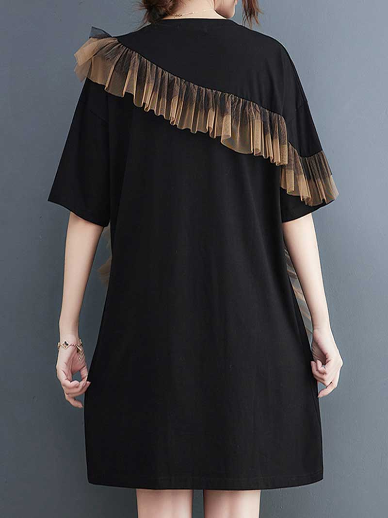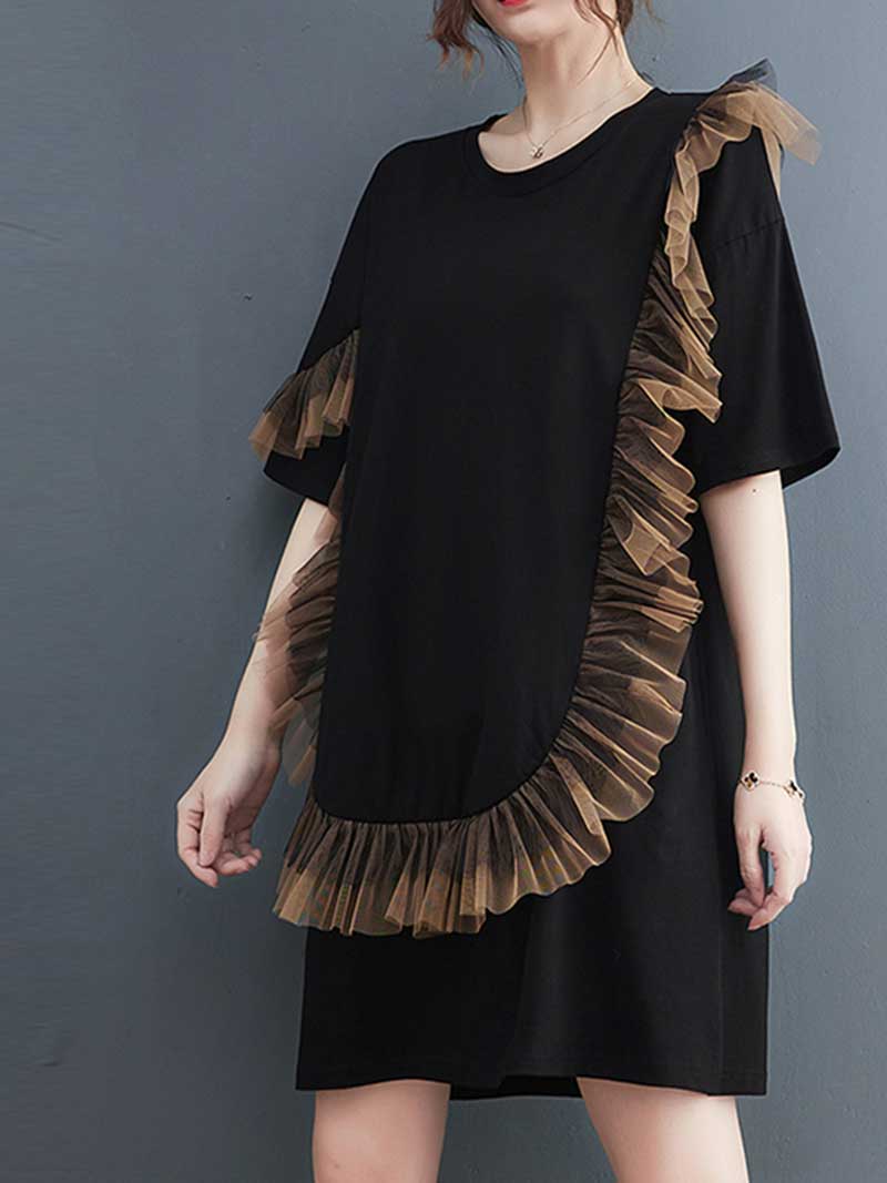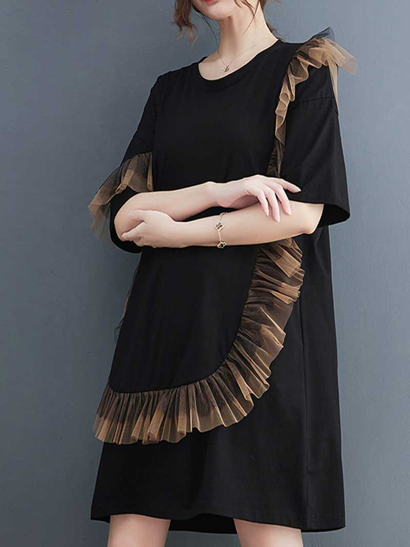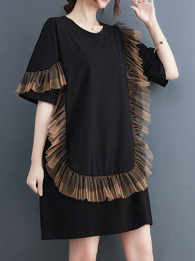 This Plain With Frill Style Short Sleeves Midi Dress is perfect! Made from a breezy brocade material. it's perfect for summer days or warm spring evenings. The round-neck collar and loose waist give it a flattering silhouette. while the short sleeves and midi length make it elegant and sophisticated. Plus. the black color is perfect for versatile styling. Whether you're dressing up for a special event or just headed to the office. this dress is sure to make you look and feel your best.