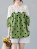 Looking for something special to wear this autumn and winter? Check out our Polka Dot Print Cotton Floral Net Lace Shirt Top! Made from cotton. it's lightweight and comfortable. perfect for layering. The round neck and puff sleeves add a touch of femininity. while the polka dot print gives it a fun and festive flair. Wear it with your favorite jeans or leggings for a stylish look that will keep you warm all season long.