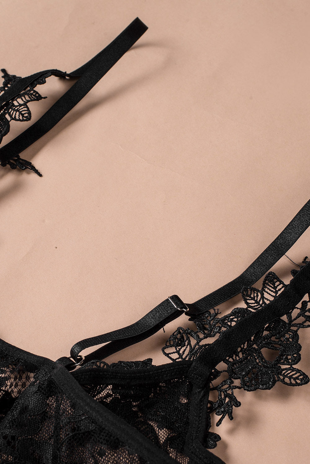 The polka dot print and mesh lace detailing add a touch of femininity and elegance to the look. while the adjustable straps and back closure ensure a perfect fit.