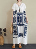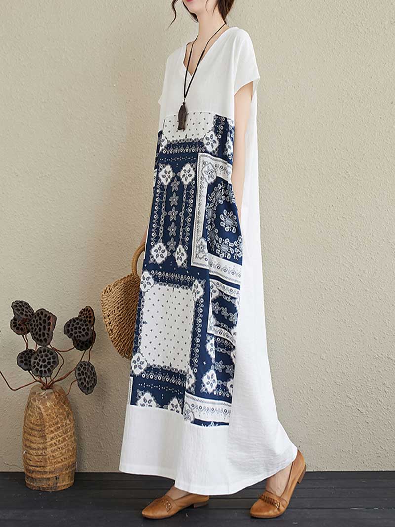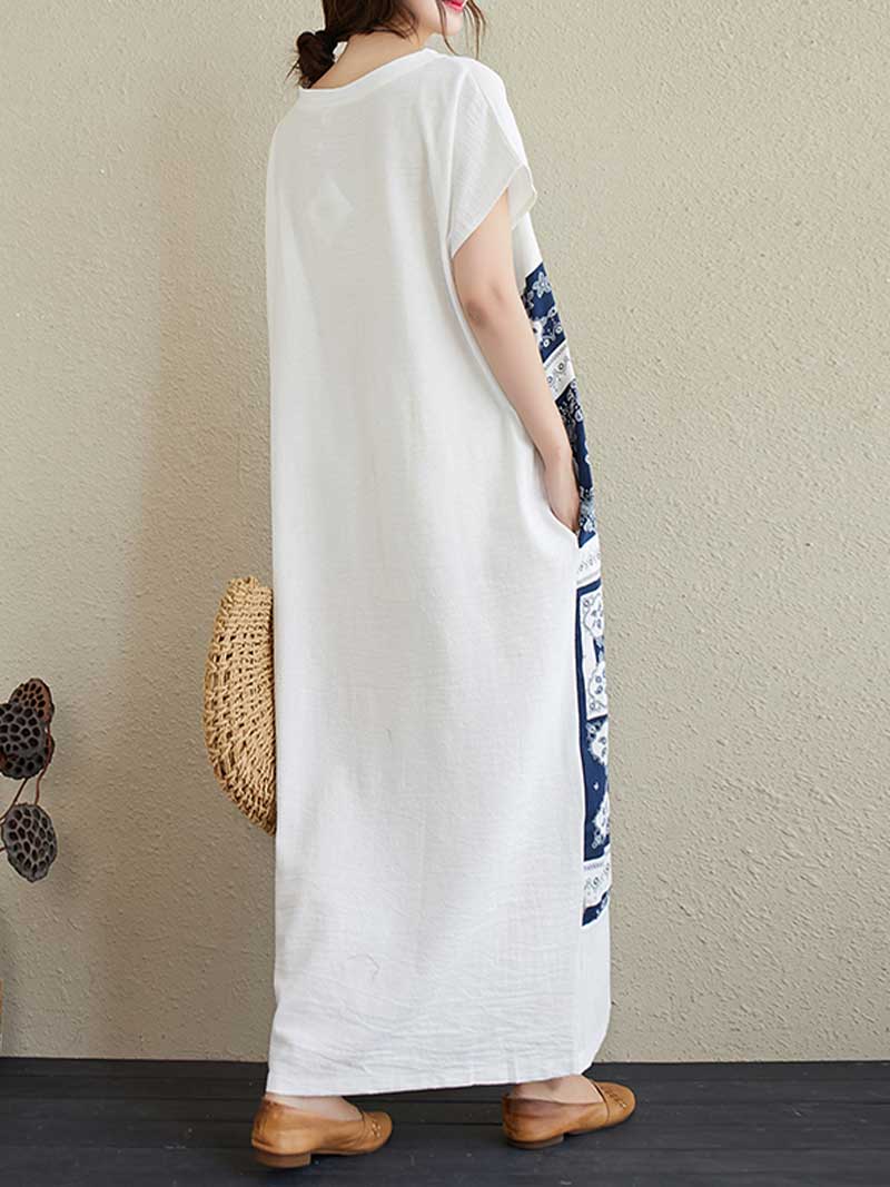 Looking for a versatile and stylish dress that you can wear in any season? This printed white Kaftan Dress is perfect for you! Made from a lightweight hemp blend. it features a flattering V-neckline and short. doll sleeves. The print is delicate and feminine. perfect for everyday wear. Plus. the A-line silhouette is universally flattering. Whether you're headed to the office or out for drinks with friends. this dress is sure to become your new go-to.