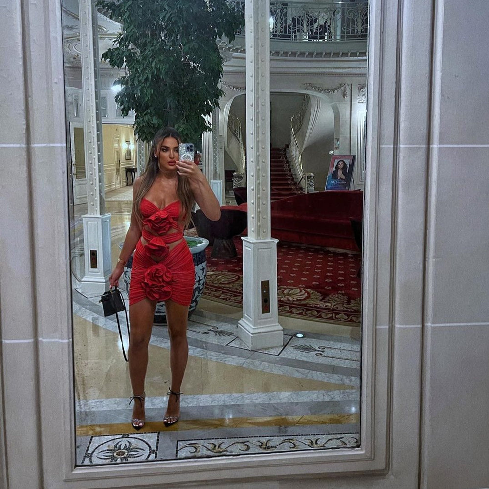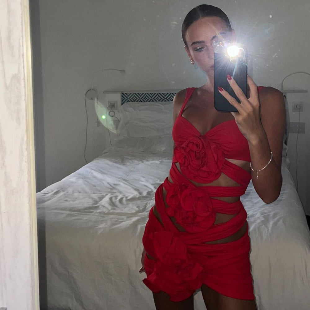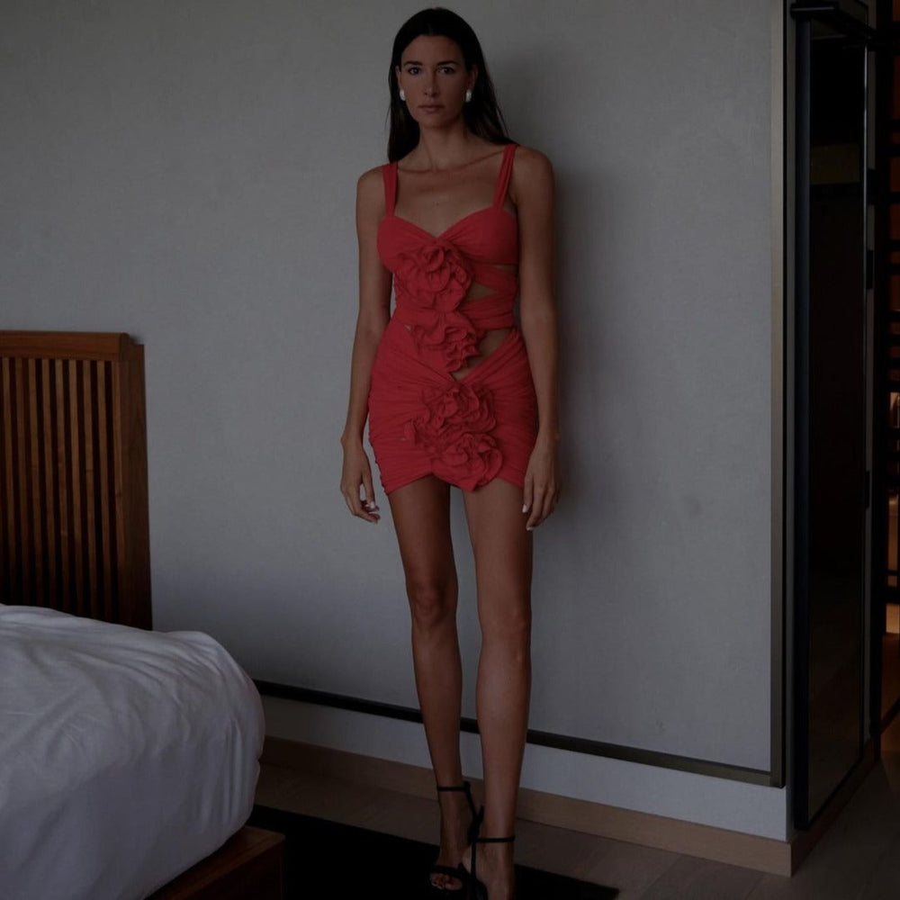 Introducing the Radiant Rose Mini Dress from Fiel Shop. where romance meets modern style. This captivating dress features a beautiful rose print that exudes femininity and elegance. The mini length adds a flirty and playful touch. while the fitted silhouette flatters your figure. Crafted with attention to detail and using high-quality materials. this dress ensures both comfort and durability. The delicate spaghetti straps and sweetheart neckline enhance the romantic allure. making it perfect for special occasions. date nights. or even a night out with friends. Pair it with heels and statement accessories for a stunning and chic ensemble. Embrace the enchantment of mermaid-inspired fashion and let the Radiant Rose Mini Dress be your go-to piece for creating captivating and unforgettable fashion moments. Embrace your inner mermaid and radiate confidence and beauty in this mesmerizing mini dress.
