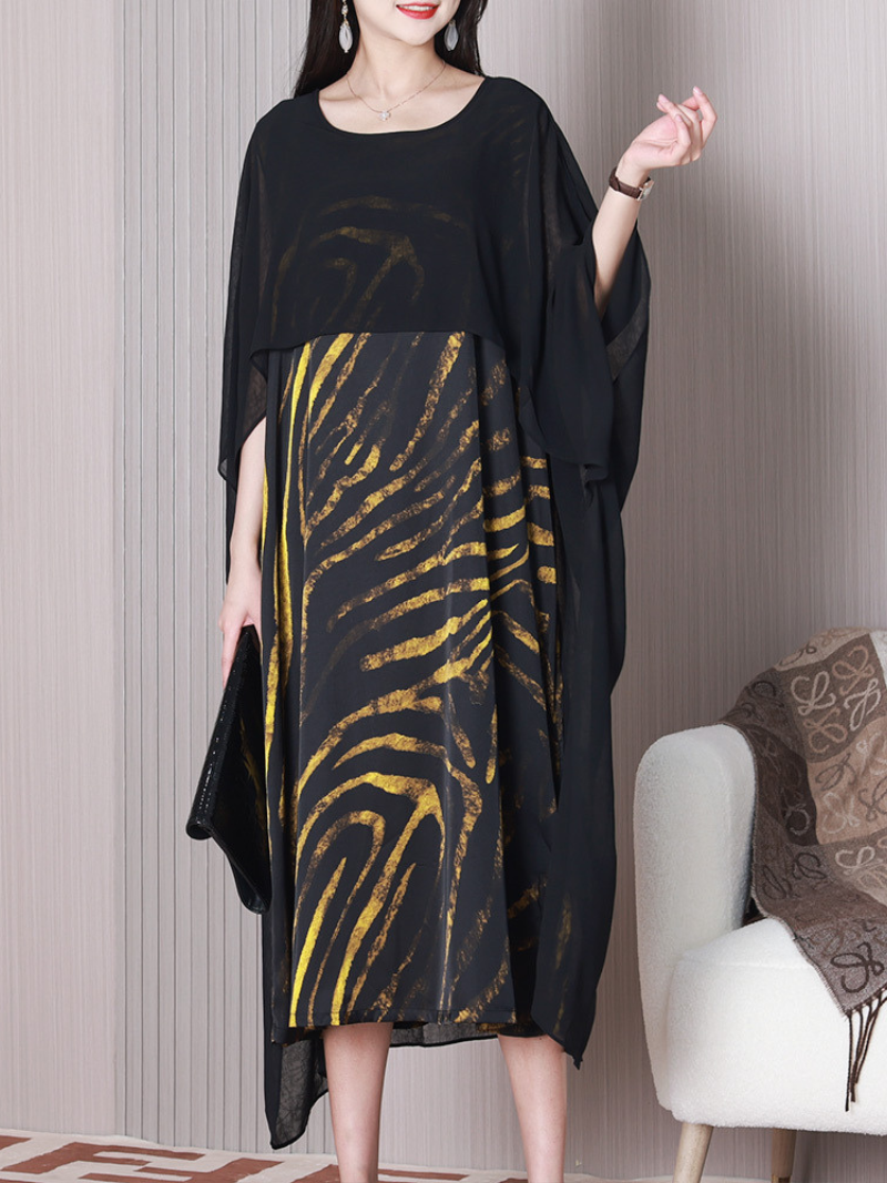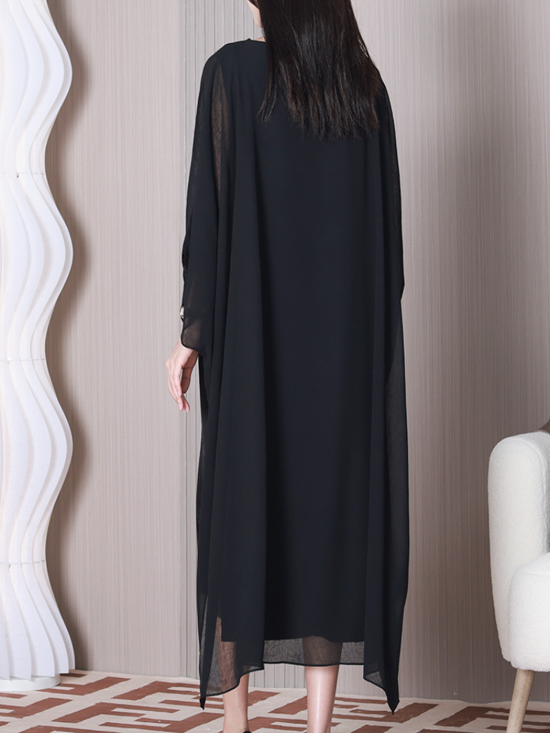 A women's round-neck A-line dress is a type of dress that features a fitted top with a round neckline and a flared skirt that widens gradually from the waist to the hem. forming an "A" shape. This style of dress is versatile and can be worn for both casual and formal occasions. depending on the fabric. length. and accessories. The Dolman sleeves are roomy and airy. allowing for free movement and providing a relaxed. casual feel. This type of dress is perfect for women who value both comfort and style. as it can be dressed up or down depending on the occasion.