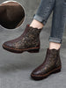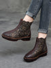 Indulge in luxury with our Women Retro Flower Leather Spliced Zipper Low Heel Boots. Crafted with intricate floral detailing. these boots exude elegance and style. The low heel offers comfort while the zipper ensures a secure fit. Elevate your wardrobe with these sophisticated and exclusive boots.