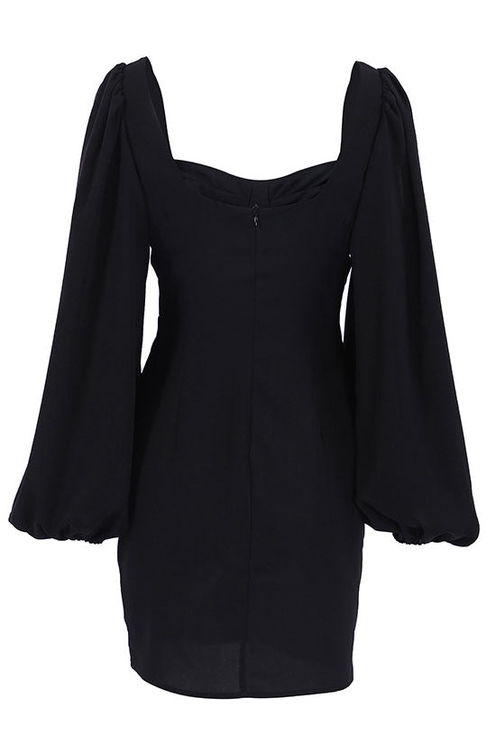 Darling. this incredibly chic party outfit. cut from lightweight polyester. is a nice choice throughout party season and beyond. Little black dresses are simple yet striking for women in spring/summer season and this vintage style long sleeve mini dress in our boutique keeps the right balance between statement and timeless classic with its subtly sweetheart neckline. puffed long sleeves that can be worn on or off the shoulder. the square open back followed by a hidden zip fastening. and the fitted silhouette in a short dress cut in 32.6''. Take this look in a sophisticated direction with all-black long boots or strappy heels.