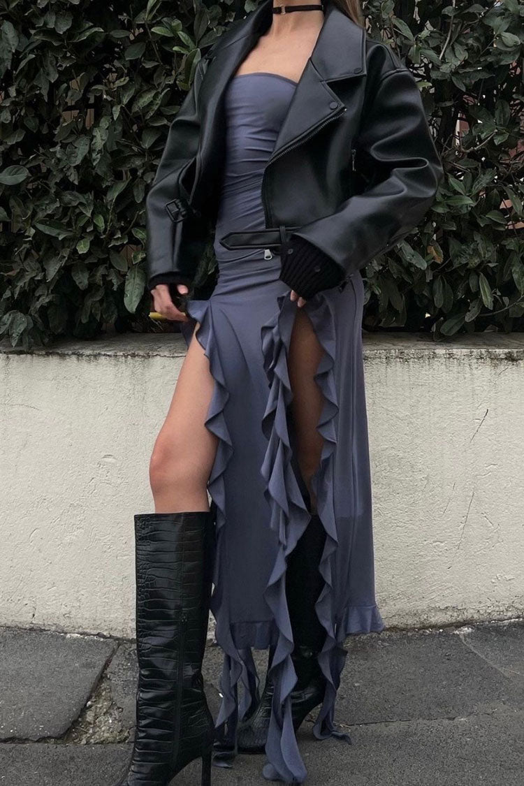 Make your summer events stylish in this summer with asymmetrical tube dresses. With its unique and eye-catching designs. this asymmetric strapless midi dress in our boutique is the perfect choice for women who looking to elevate the style and stand out from the crowd in an effortless chic way. Featuring a striking fitted tank top design. this ruffle trimmed midi dress is both chic and sophisticated. The thigh high slits at both sides with ruffled straps and its asymmetrical hemline adds a touch of drama. while the lightweight polyester fabric ensure you stay cool and comfortable. no matter the occasion. Pair with your favorite sandals or wedges and statement jewelry for a unique summer outfit that is sure to turn heads.