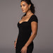 Our Self-Made Girl Knitted Midi Dress features a gorgeous neckline withshort sleeves and midi length. It is made from a ribbed knit fabric.