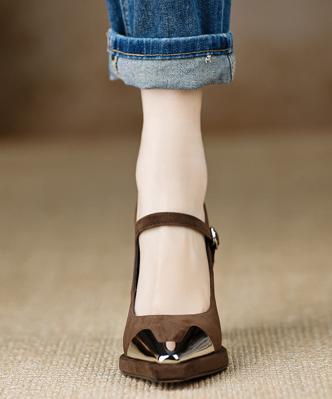 2025 Chunky High Heels Black Suede featuring Sequin Accents and Splicing Detail