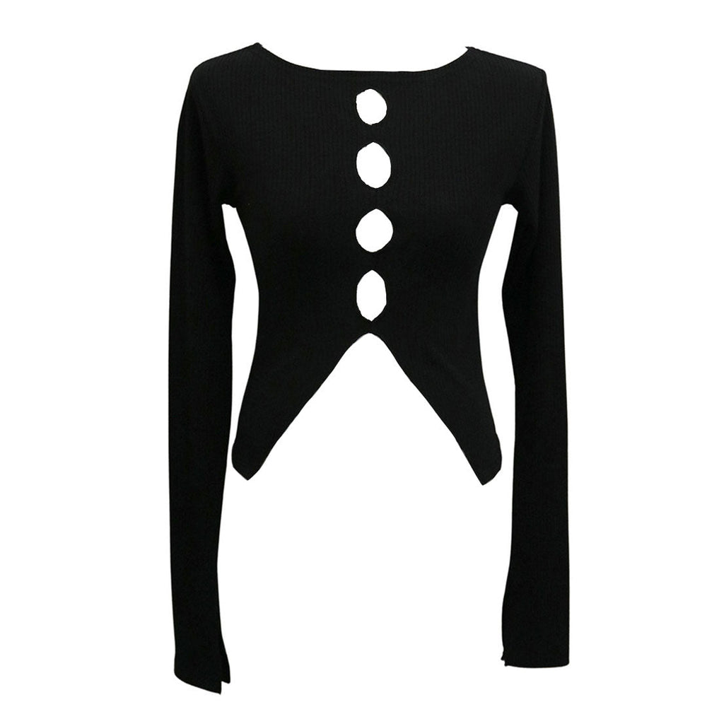 Make them fall head over heels for you while you wear this ribbed crop top. Made of polyester and ribbed knitted fabric. stand out in saucy cutouts at the front accented with a slit design at the hem. featuring a boat neckline. long sleeves trimmed with slit cuffs. a pull-on styling and a fitted silhouette. ending up with a cropped length. Find more unique women's cutout tops or trendy clothing in our boutique. and wear it with a pair of high-rise denim and a pointed-toe heels for an edgy look.