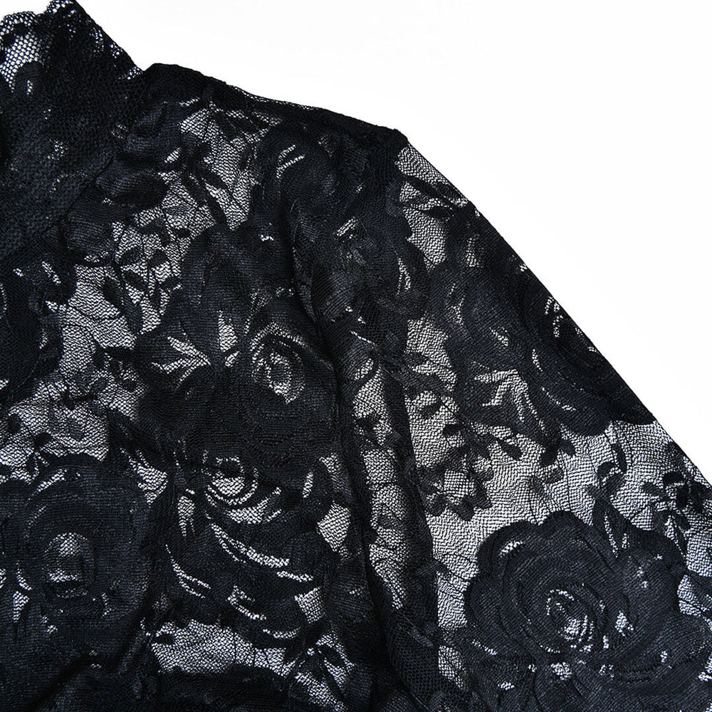 This beautiful cropped lace top is perfect for making a bold statement.Featuring pretty lace flower detailing and a scalloped high neckline. this trendy cropped top is designed to make a statement. The unique ruched bra detail and two layers of lace fabric make it both comfortable and stylish. The lace long-sleeve design with flared sleeves adds a touch of sophistication to the look. Although unlined. the lace fabrication makes this style sheer. adding a touch of mystery and allure. With its pull-on construction. slipping into this top has never been easier. This top is bold and distinctive. making it perfect for standing out from the crowd. Amp up the statement by pairing it with some colorful eyeshadow. or tone it down with a casual hairstyle and some neutral accessories.