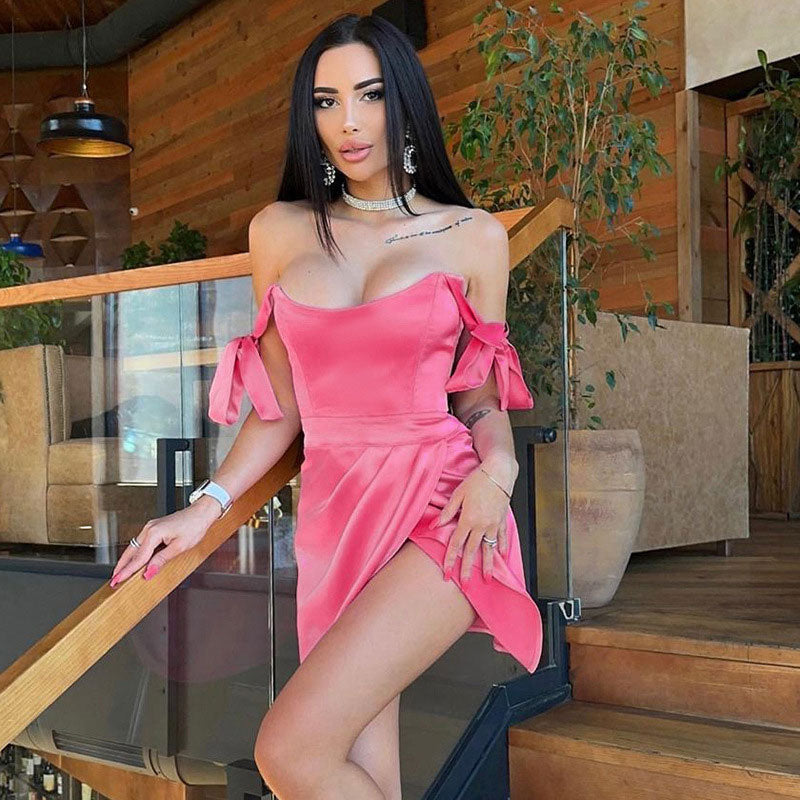 Sweeten up your summer wardrobe with this cute mini dress! Made of polyester and elastane. embellished with a wrapped design embodied with ruching details. featuring a romantic contoured neckline. a sleeveless bodice framed with versatile tie-up shoulder straps. a tulip hem adorned with a whimsical front split. a fitted profile finished with a short length. Find more unique women's tie-strap dresses or trendy clothing in our boutique. and team it with a sparkly choker necklace to complete a unabashed look.