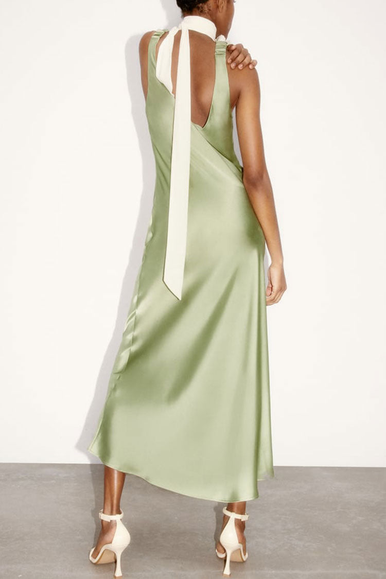 Welcome to our exquisite silky satin dresses collection. where glamour meets comfort in the form of this satin maxi dress. This soft sleeveless maxi dress in our boutique is a true representation of opulence and elegance. designed for women. Featuring alluring V-shaped cuts at front and back. elasticated suspender straps with ruched detailing. a fluid effect tank silhouette with a flared. long dress cut. this breezy summer sun dress drapes over your body effortlessly. enhancing your curves and accentuating your figure that is perfect for any occasion. Whether you are attending a wedding. prom. or any other formal event. this glamorous party outfit is sure to make you stand out in a crowd.