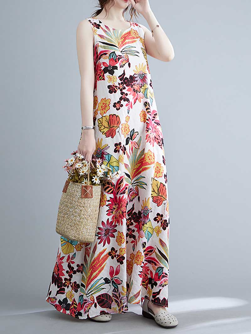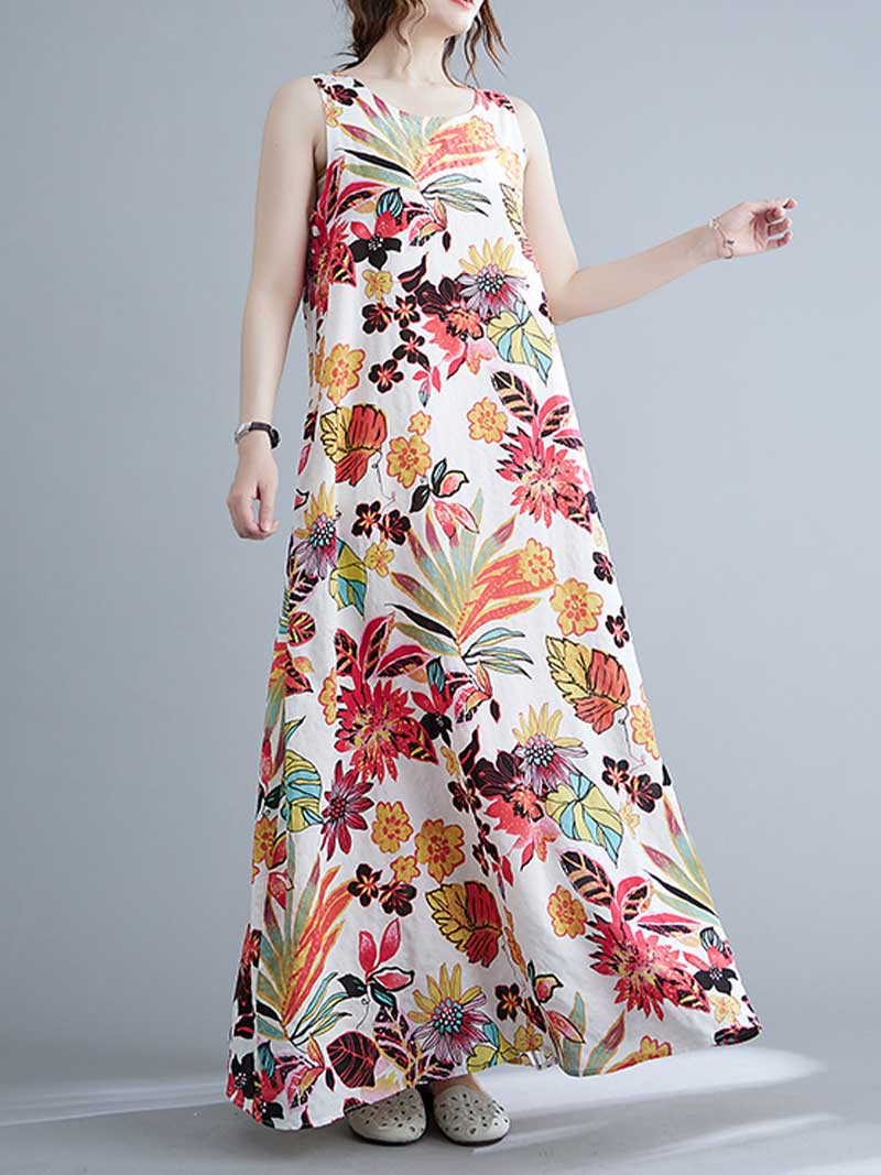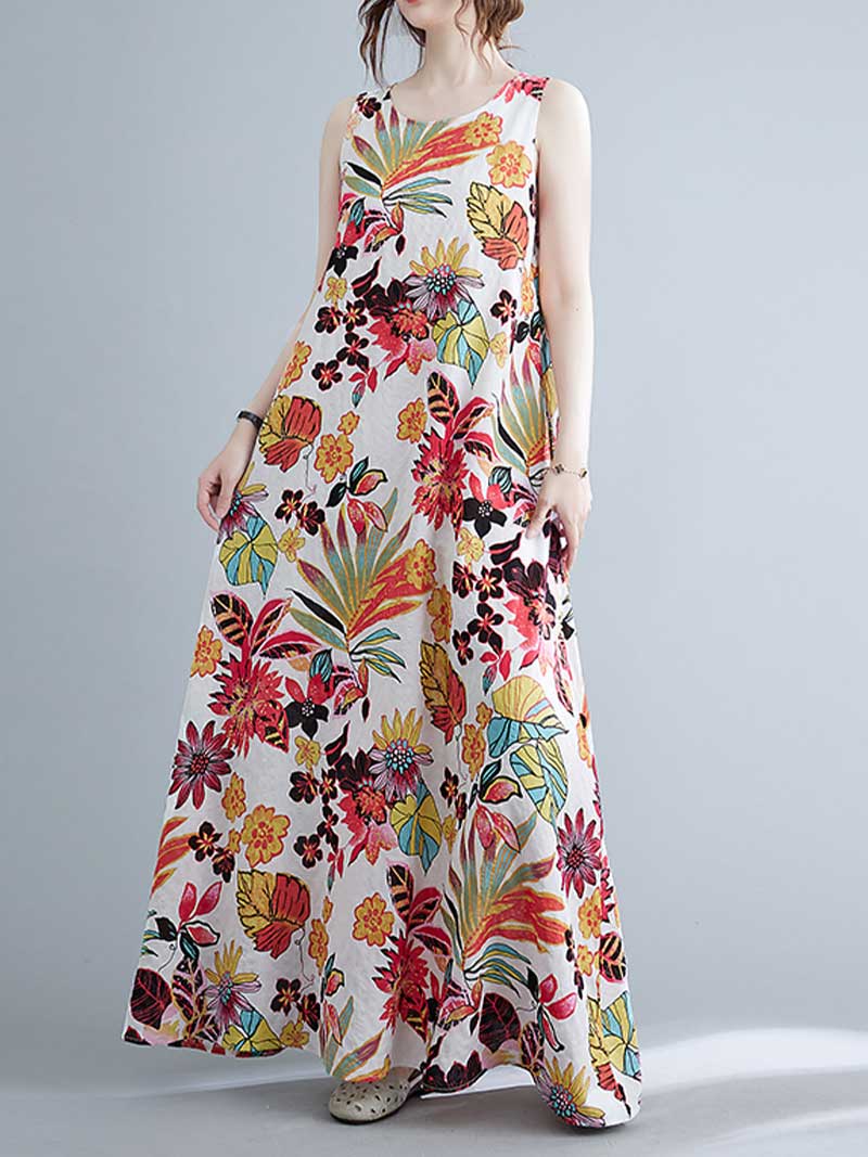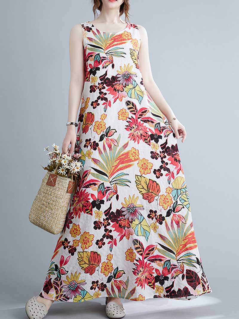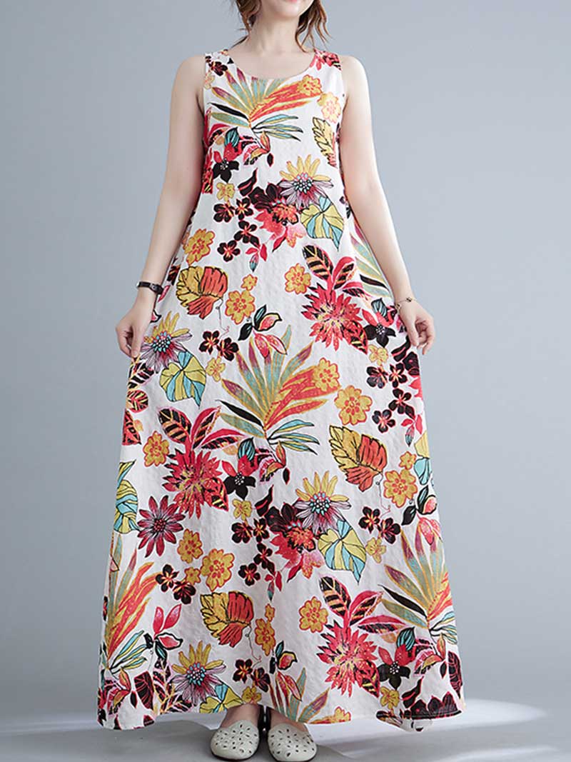 Look no further than this sleeveless cotton floral A-line dress! Made from 100% cotton. this dress is perfect for warmer days and can be dressed up or down to suit any occasion. The loose waist and regular fit make it extremely flattering on any body type. while the round neck and sleeveless design keep it cool and comfortable. And with its pretty floral pattern. this dress is sure to turn heads wherever you go! Choose from blue or red and add this beautiful dress to your wardrobe today.