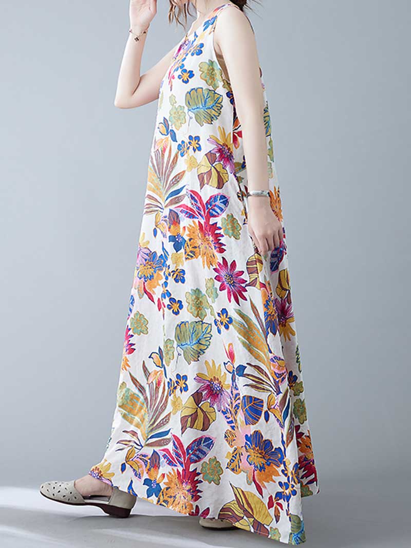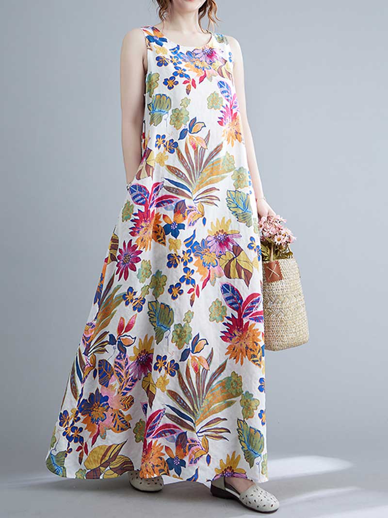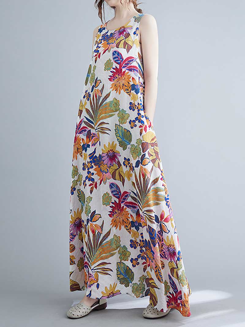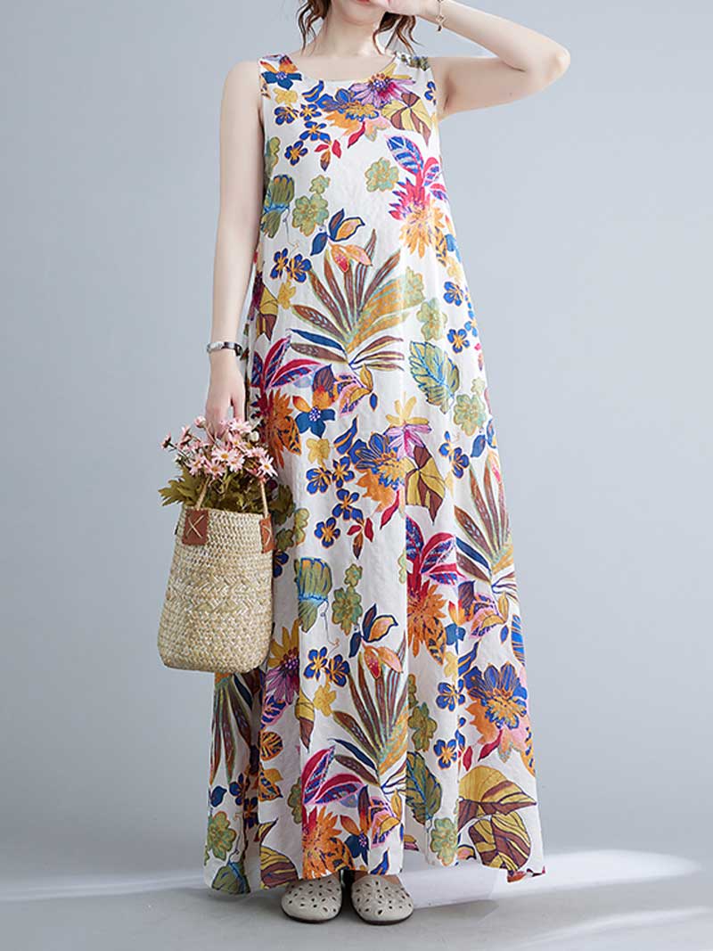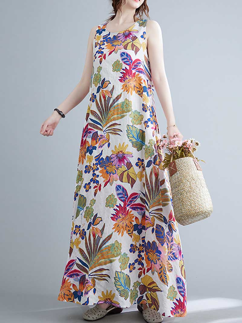Look no further than this sleeveless cotton floral A-line dress! Made from 100% cotton. this dress is perfect for warmer days and can be dressed up or down to suit any occasion. The loose waist and regular fit make it extremely flattering on any body type. while the round neck and sleeveless design keep it cool and comfortable. And with its pretty floral pattern. this dress is sure to turn heads wherever you go! Choose from blue or red and add this beautiful dress to your wardrobe today.