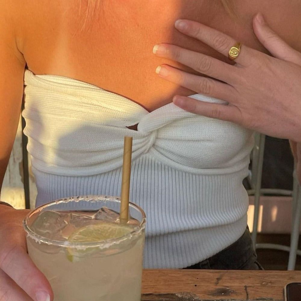 Discover a small treasure in our Ruched Twist Bandeau Knitted Top. This charming and versatile piece combines comfort with a touch of sophistication. The ruched twist detail at the front adds a playful and flattering twist to the classic bandeau style. Crafted with a soft and stretchy knitted fabric. this top hugs your figure while offering all-day comfort. Whether paired with high-waisted jeans for a casual chic look or dressed up with a skirt for a night out. the Small Treasure Knitted Top is a must-have addition to your wardrobe. Embrace the effortless style and let this top become your go-to treasure for any occasion.