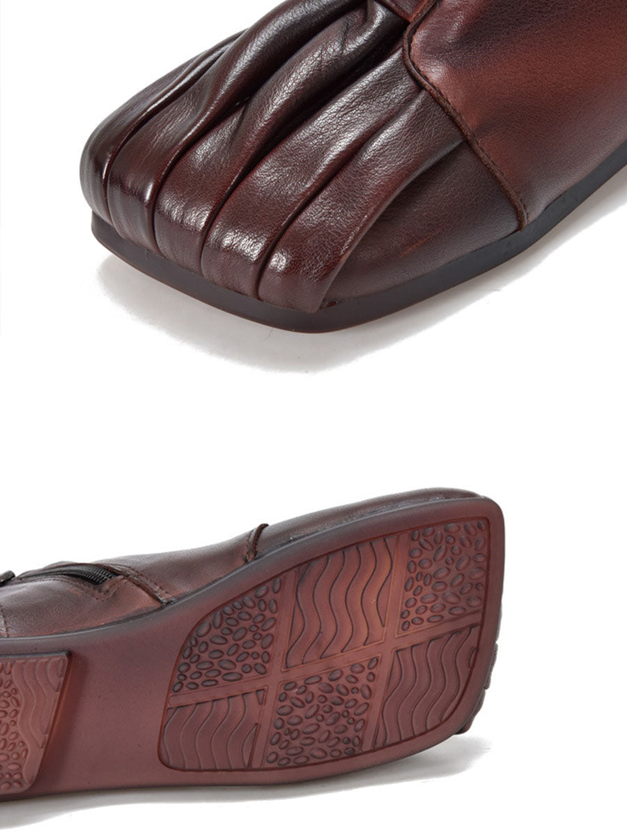Indulge in luxury with our Women Soft Leather Shirred Square Toe Ankle Boots. Made with premium soft leather. these boots not only provide comfort but also exude elegance with its unconventional square toe design and shirred details. Perfect for any occasion. these boots are a must-have in your exclusive collection.