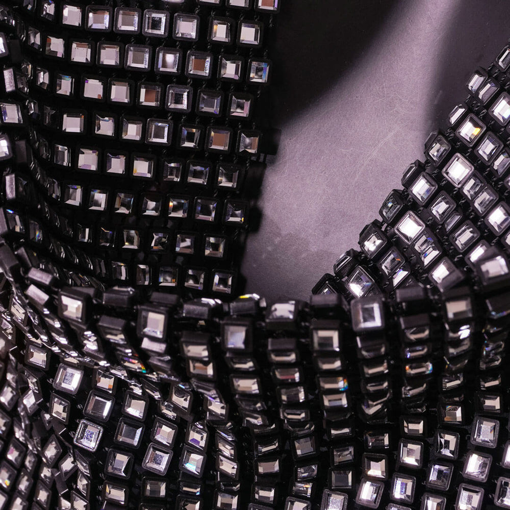 If you're all about making sexy yet stylish statements for your party. then look no further than this backless top! Crafted with polyester and blend alloy. embellished with faceted shiny crystals. featuring a draped neckline. a halter chain framed with a lobster closure. a saucy open back design structured with a detachable metallic fastening. a fitted silhouette finished with a short length. Find more trendy women's embellished tops or unique clothing in our boutique. and complete an alluring club look with a pair of leather pants and sparkly earrings.