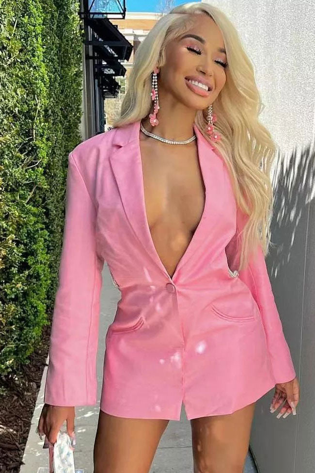 Making a splash in barely-there blazer dresses! This sparkly blazer mini dress is a bold evening option for women. embellished with lustrous crystal ropes that trace the skin-baring open back. Completed with a classic notch lapel collar. a single-button placket at front. regular long sleeves. a tailored silhouette with a dramatic back slit in a short dress cut. this glittering little black dress in our boutique is sophisticated but stylish in different seasons. Continue to create beauty all around you with some pretty statement earrings.