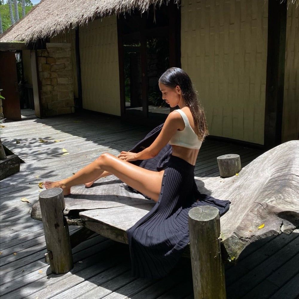 Stand Me Out Sweater Cropped Top Midi Skirt Two-Piece Set