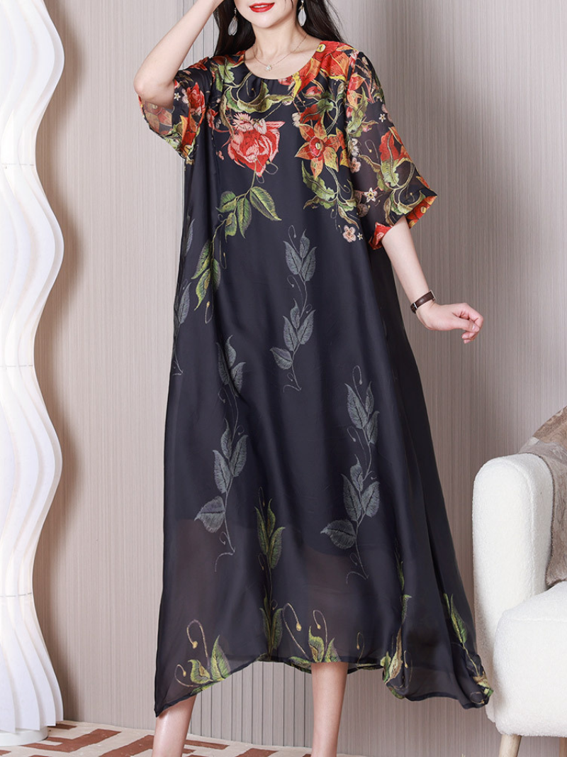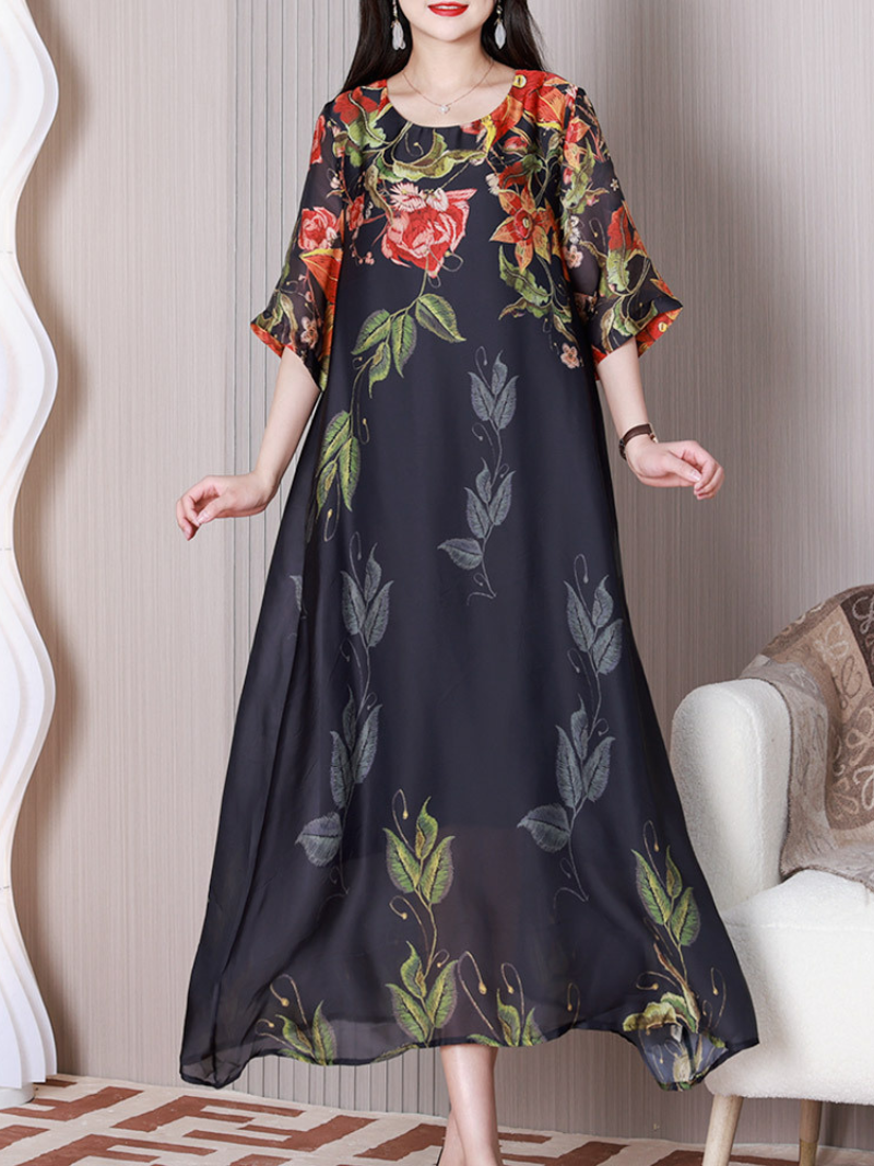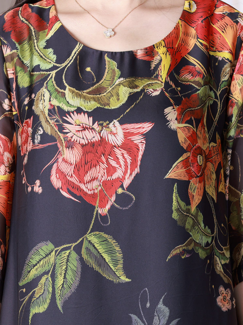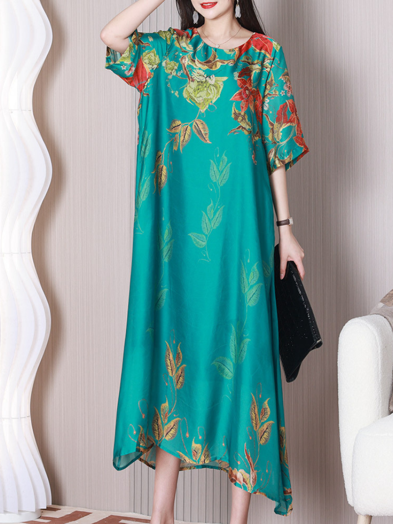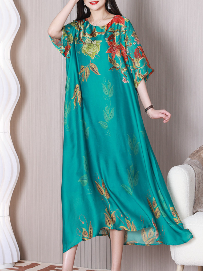 This comfortable and elegant dress is perfect for any occasion.It has a round neck. short sleeves and a middle waist. The skirt is long enough to cover your bum and make you look more elegant. The fabric is made of tencel which is machine washable at 30 degrees C. can be hung dry in the shade or ironed but not steam dry.