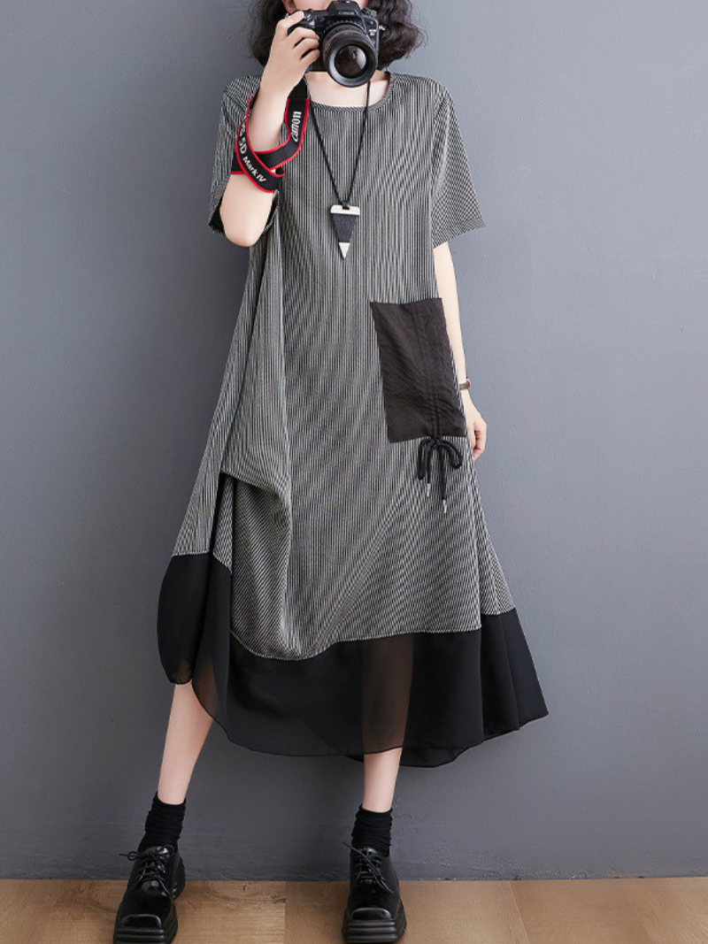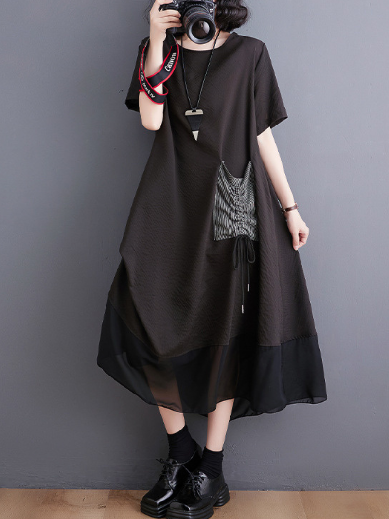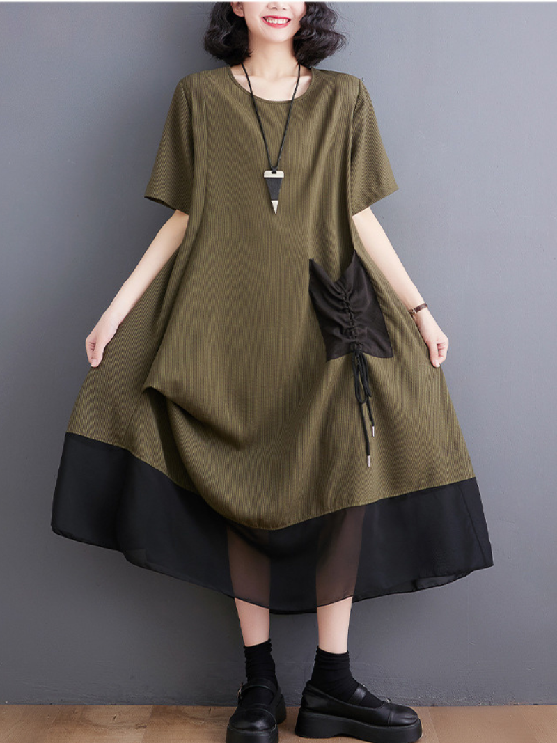 The Stay With Me Women's Round Neck Pullover A-line Dress is a stylish and versatile piece of clothing designed for women. Made from high-quality chiffon material. this dress is both lightweight and comfortable to wear. making it perfect for casual and formal occasions. The dress comes in three different colors: gray. black. and army green. giving you plenty of options to choose from depending on your style and preference.The dress features a round neckline. which adds a touch of elegance to the overall design. The short sleeves are perfect for warmer weather and allow for ease of movement. The dress is a pullover style. which means it is easy to slip on and off. making it ideal for busy women on the go. The A-line silhouette of the dress is flattering for all body types. creating a feminine and chic look.The skirt of the dress is midi-length. which falls between the knee and ankle. making it appropriate for a variety of occasions. This length is perfect for those who prefer a more modest look or who want to showcase their favorite footwear.These dresses are available in four different sizes: M. L. XL. and 2XL.