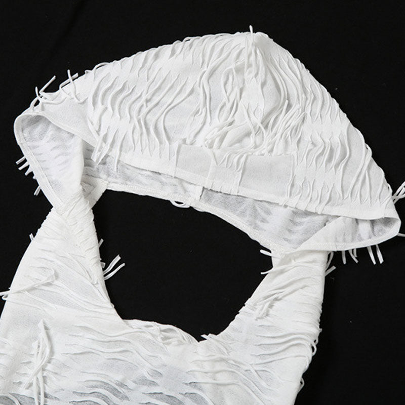 They will get starry eyes when you walk in this stylish distressed dress. Crafted with polyester and elastane. stand out in slashed designs allover with draped strings. featuring a solid hood along with a chic neckline. a slipover styling framed with a sleeveless bodice. a slightly fitted profile finished with a short length. Find more unique women's slashed dresses or trendy clothing in our boutique. and ground it with a pair of pumps to glam up the look.