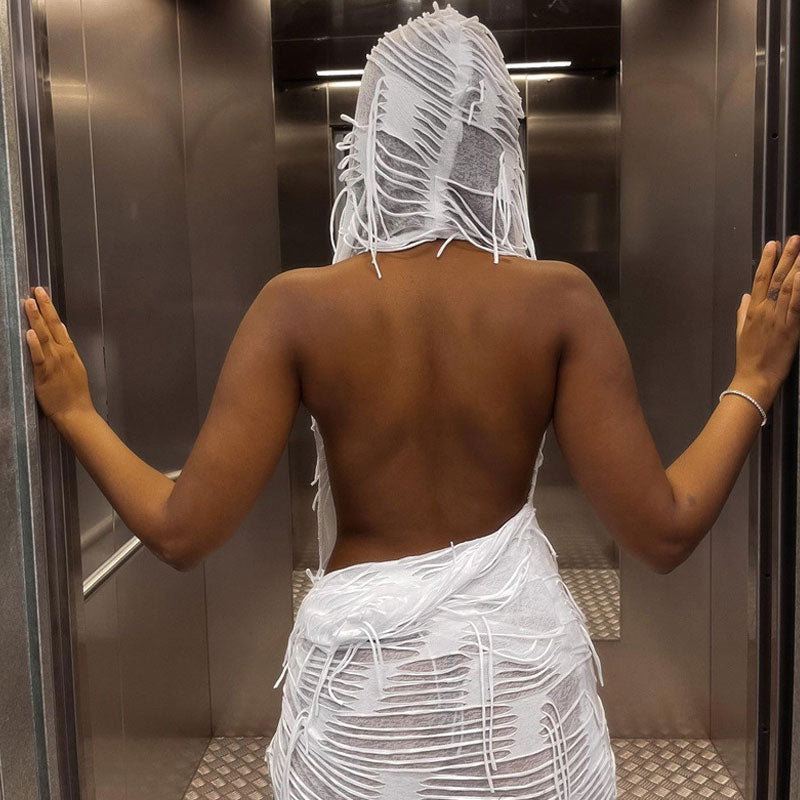 They will get starry eyes when you walk in this stylish distressed dress. Crafted with polyester and elastane. stand out in slashed designs allover with draped strings. featuring a solid hood along with a chic neckline. a slipover styling framed with a sleeveless bodice. a slightly fitted profile finished with a short length. Find more unique women's slashed dresses or trendy clothing in our boutique. and ground it with a pair of pumps to glam up the look.