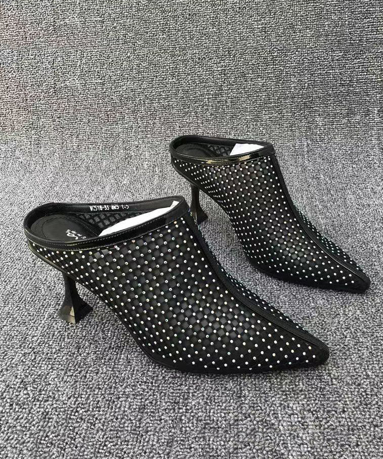 Elevate your style with these chic and elegant Stylish Gold Tulle Zircon High Heel Slide Sandals. featuring a pointed toe for a trendy touch. Crafted with luxurious materials and embellished with stunning zircon accents. these sandals are the perfect pair for any occasion.